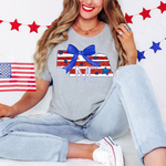 Patriotic NE Stars Stripes Glitter Bow DTF Print