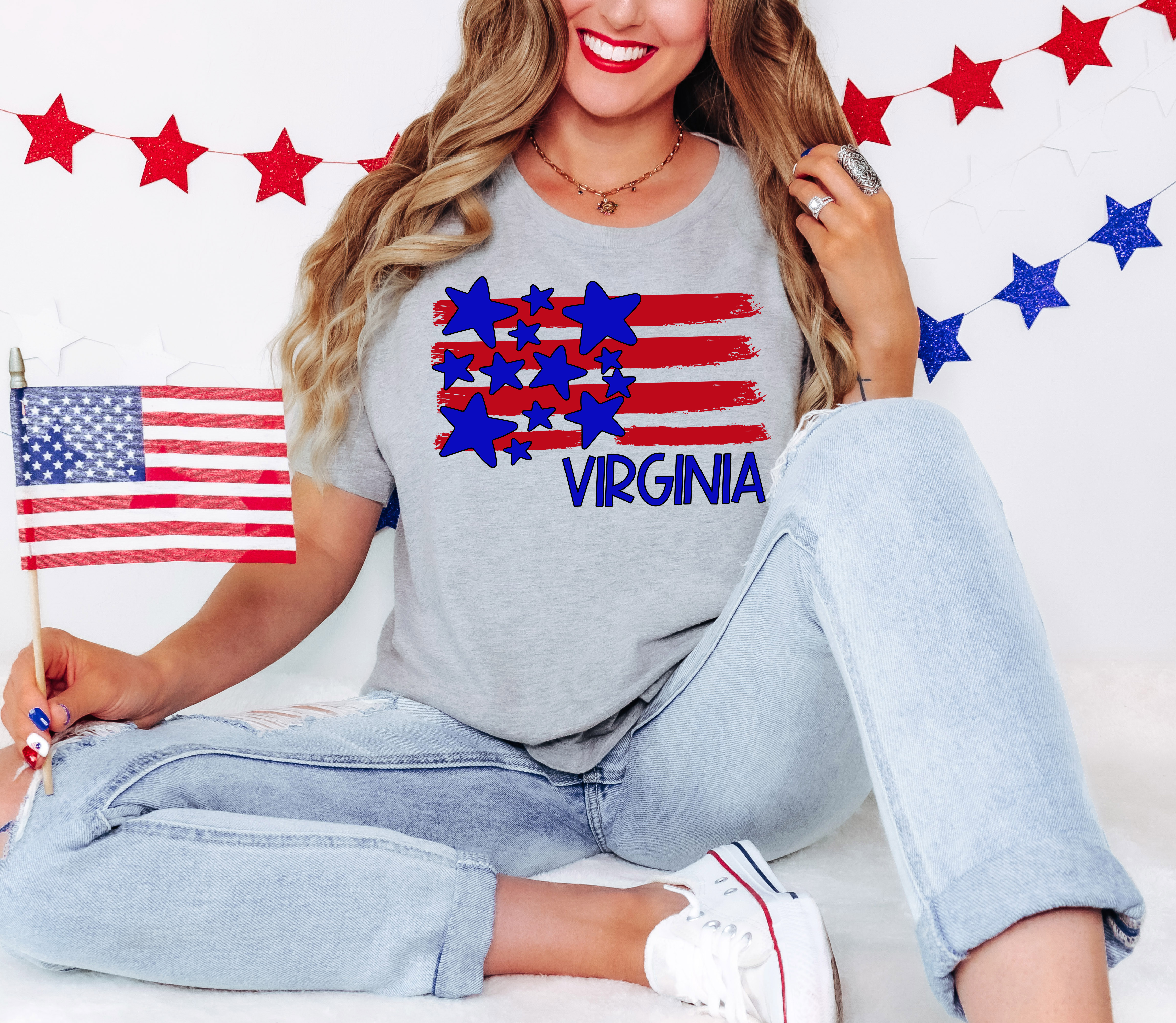 Virginia Plain Flag with Stars and Stripes DTF Print