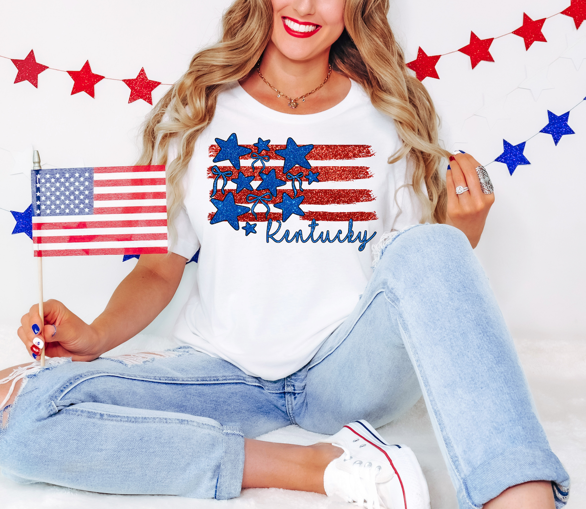 Kentucky Brush Stroke Flag and Bows DTF Print