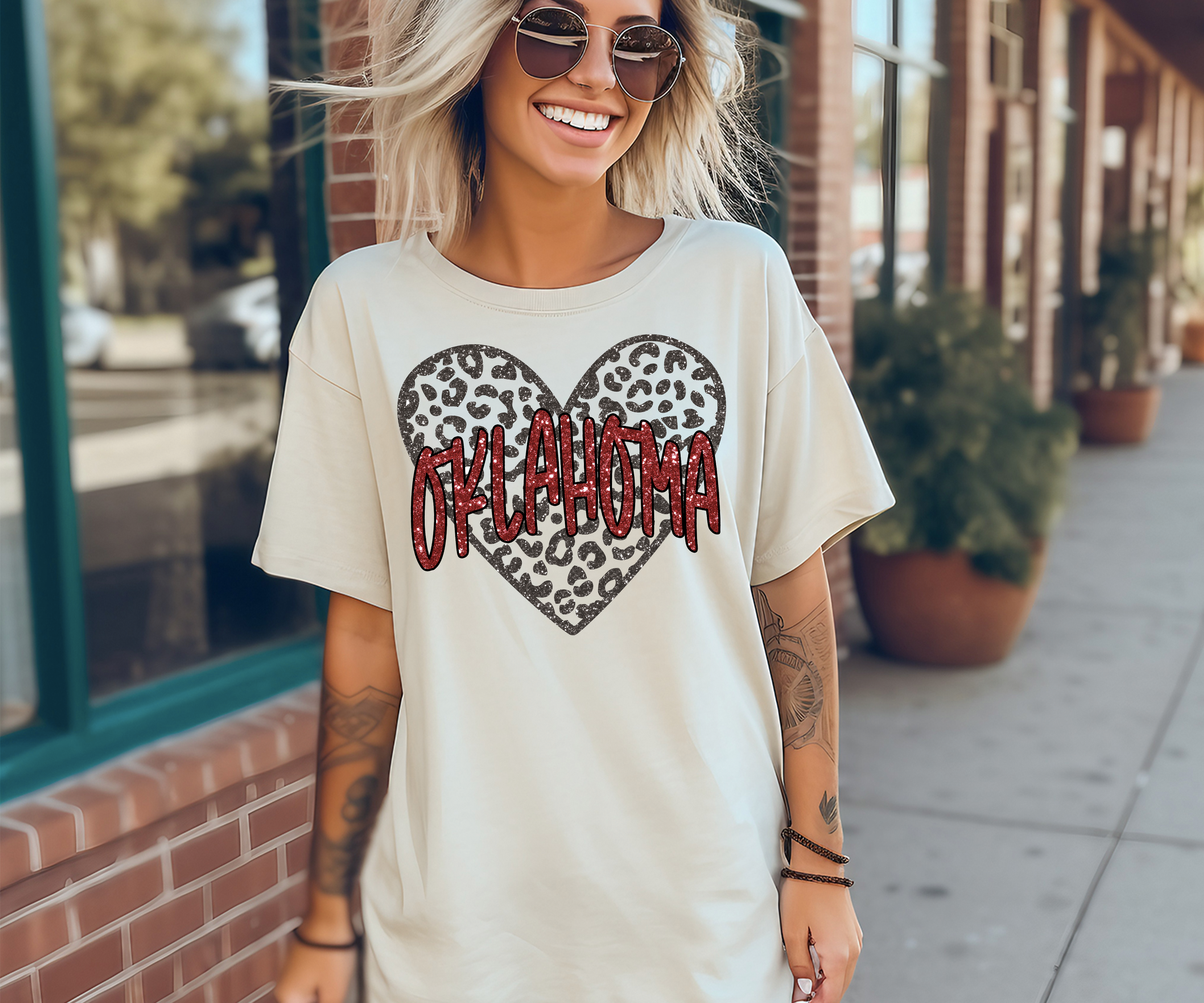 Oklahoma Faux Glitter Heart DTF Print