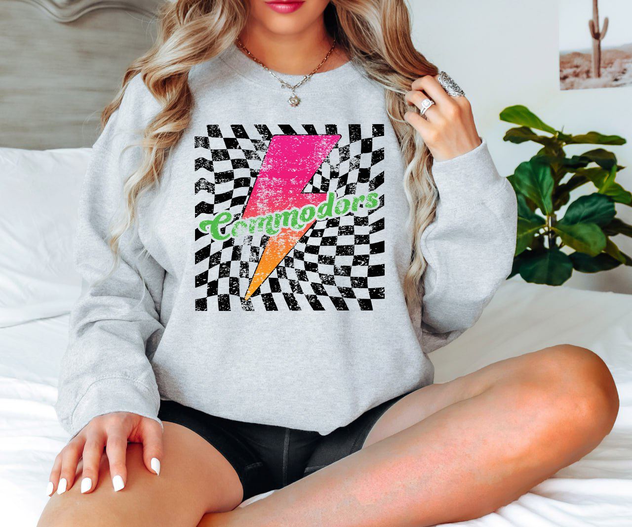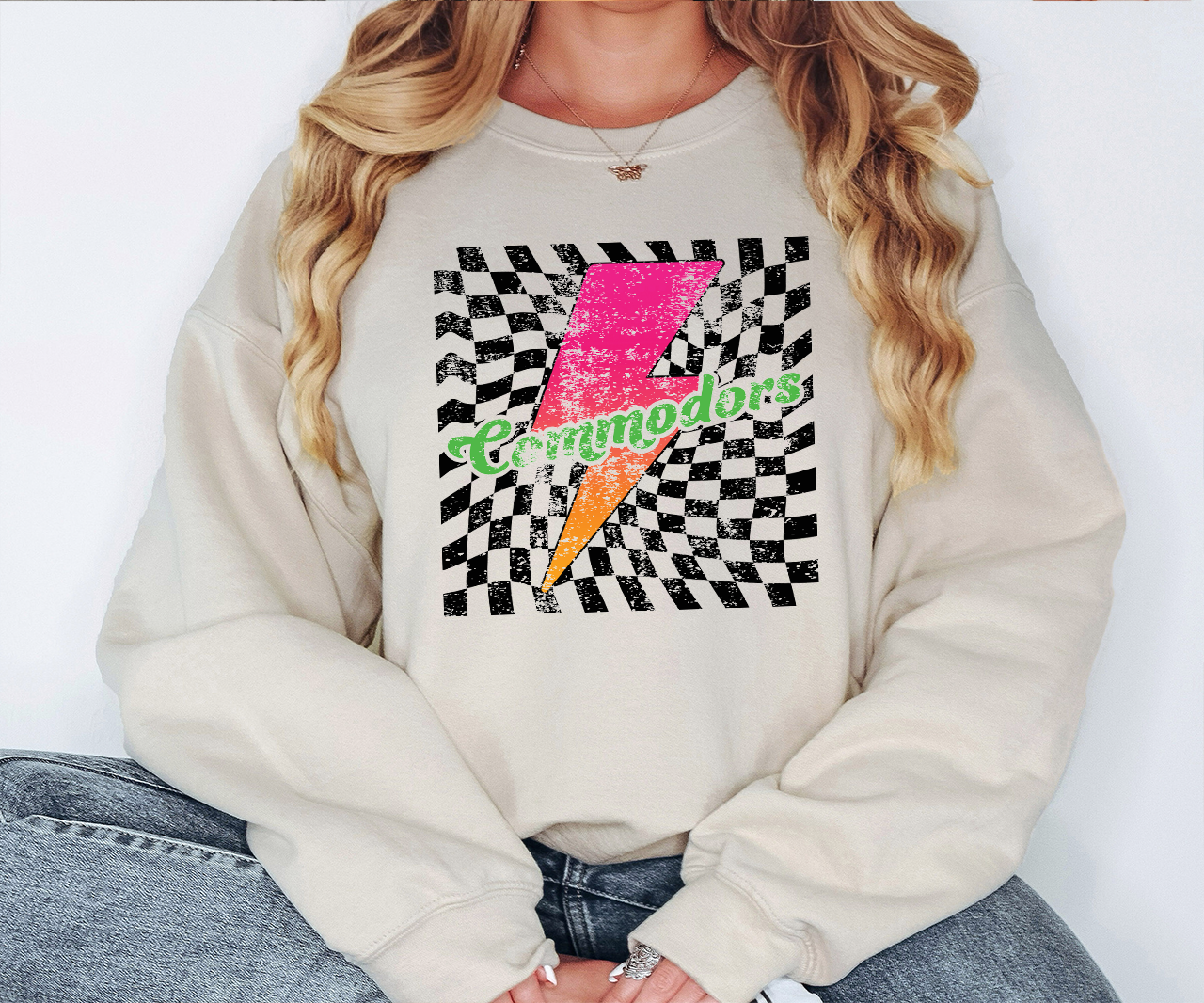 Commodors Checker Bolt Distressed DTF Print