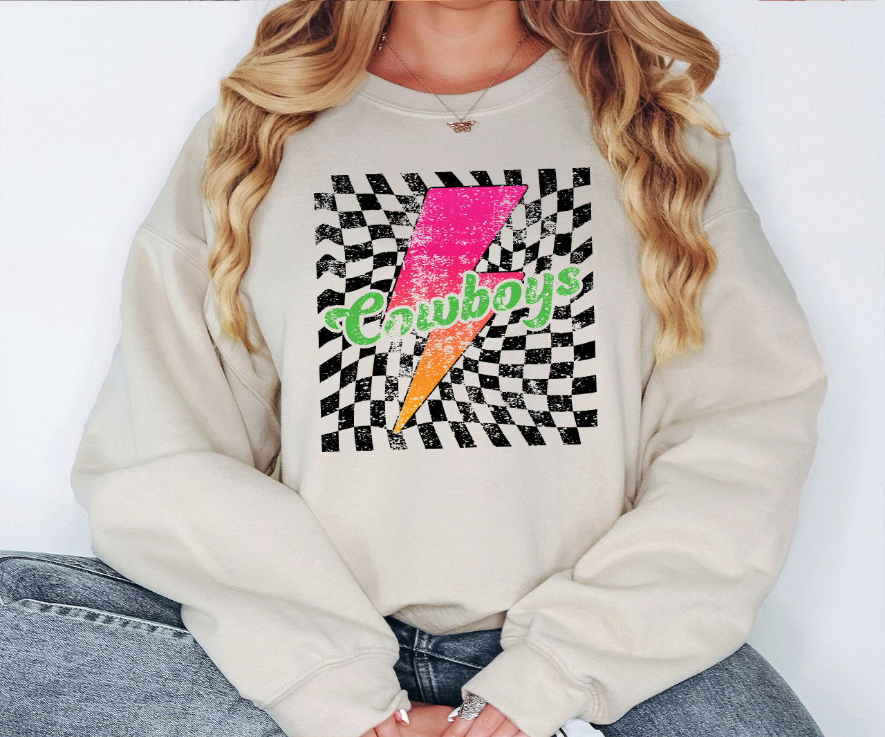 Cowboys Checker Bolt Distressed DTF Print