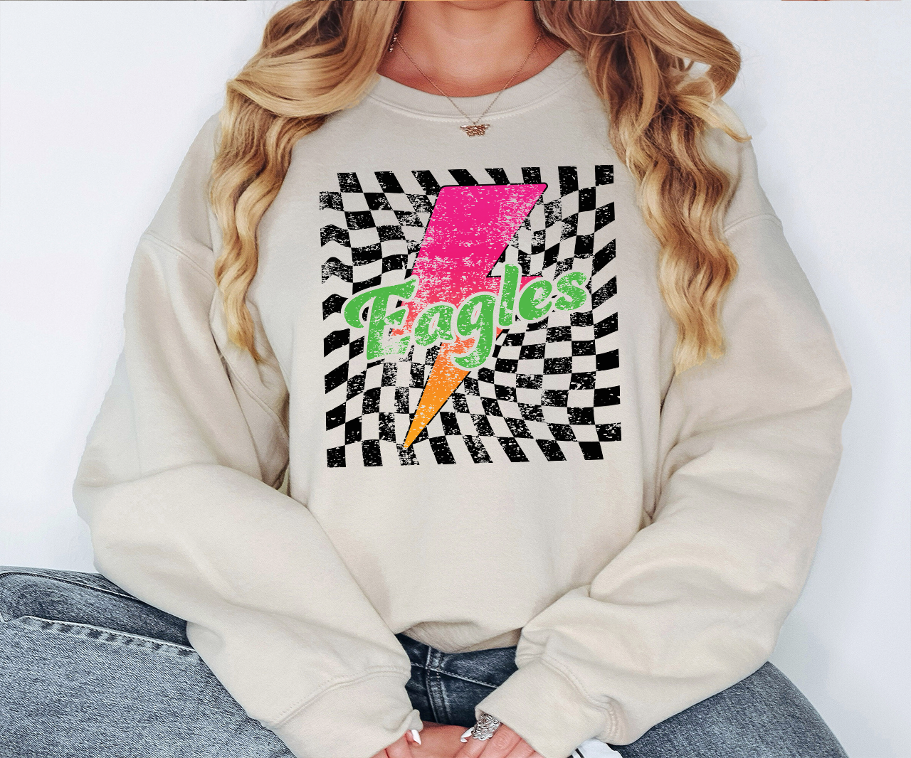 Eagles Checker Bolt Distressed DTF Print