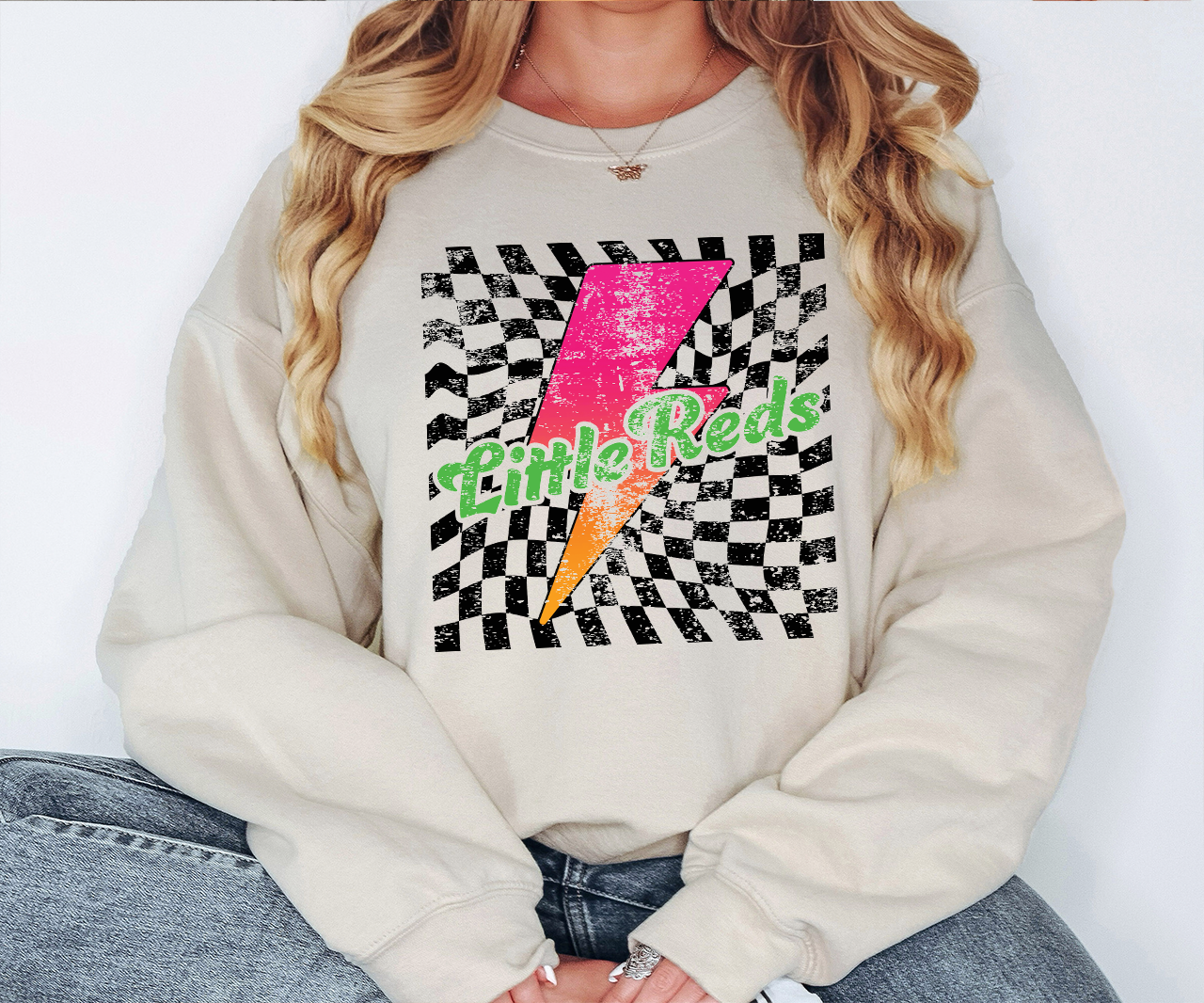 Little Reds Checker Bolt Distressed DTF Print