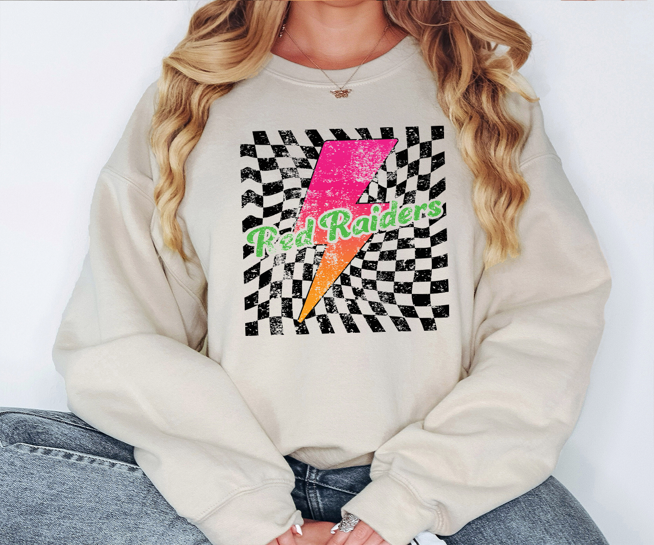 Red Raiders Checker Bolt Distressed DTF Print