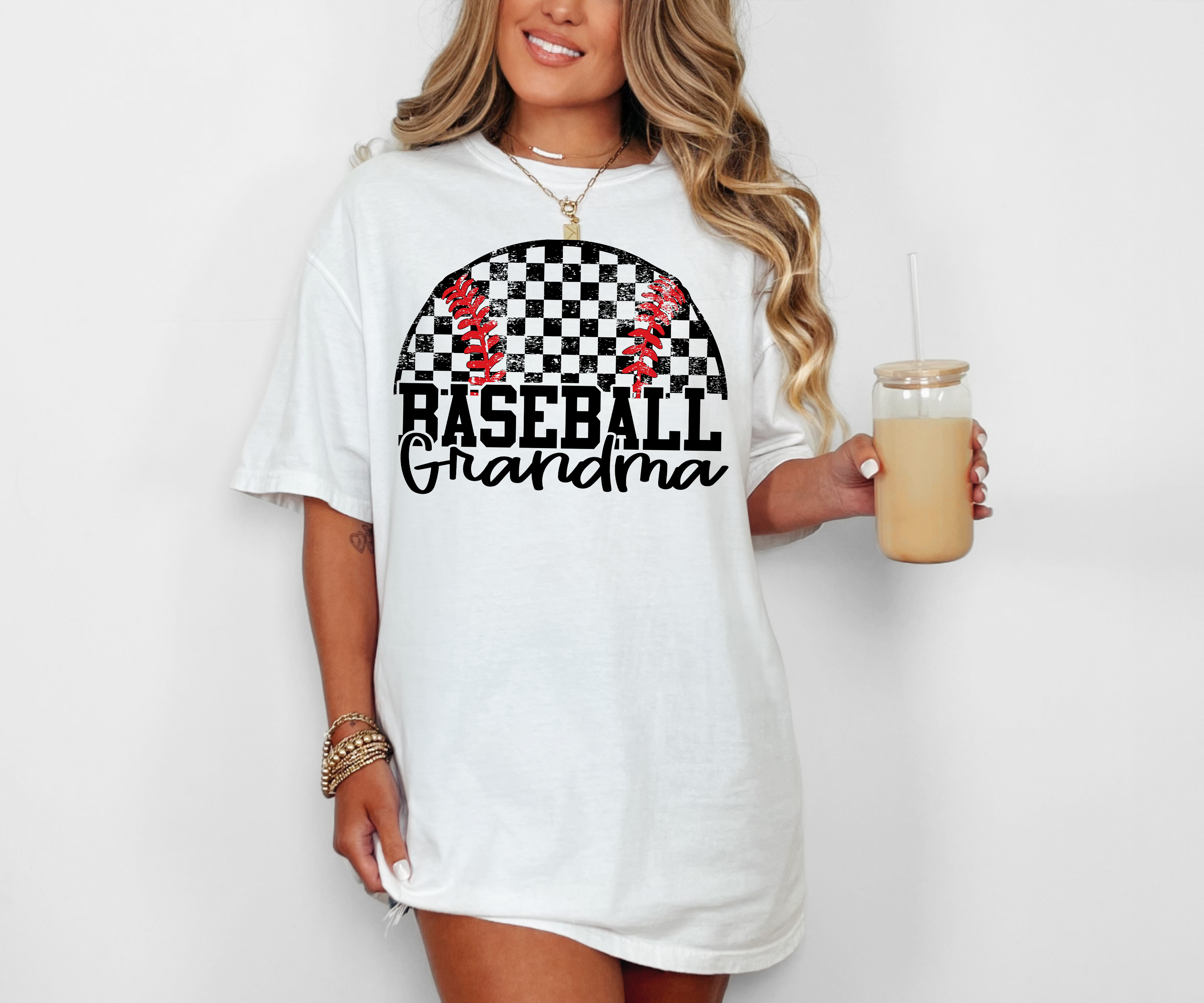 Distressed Checker Baseball Grandma DTF Print
