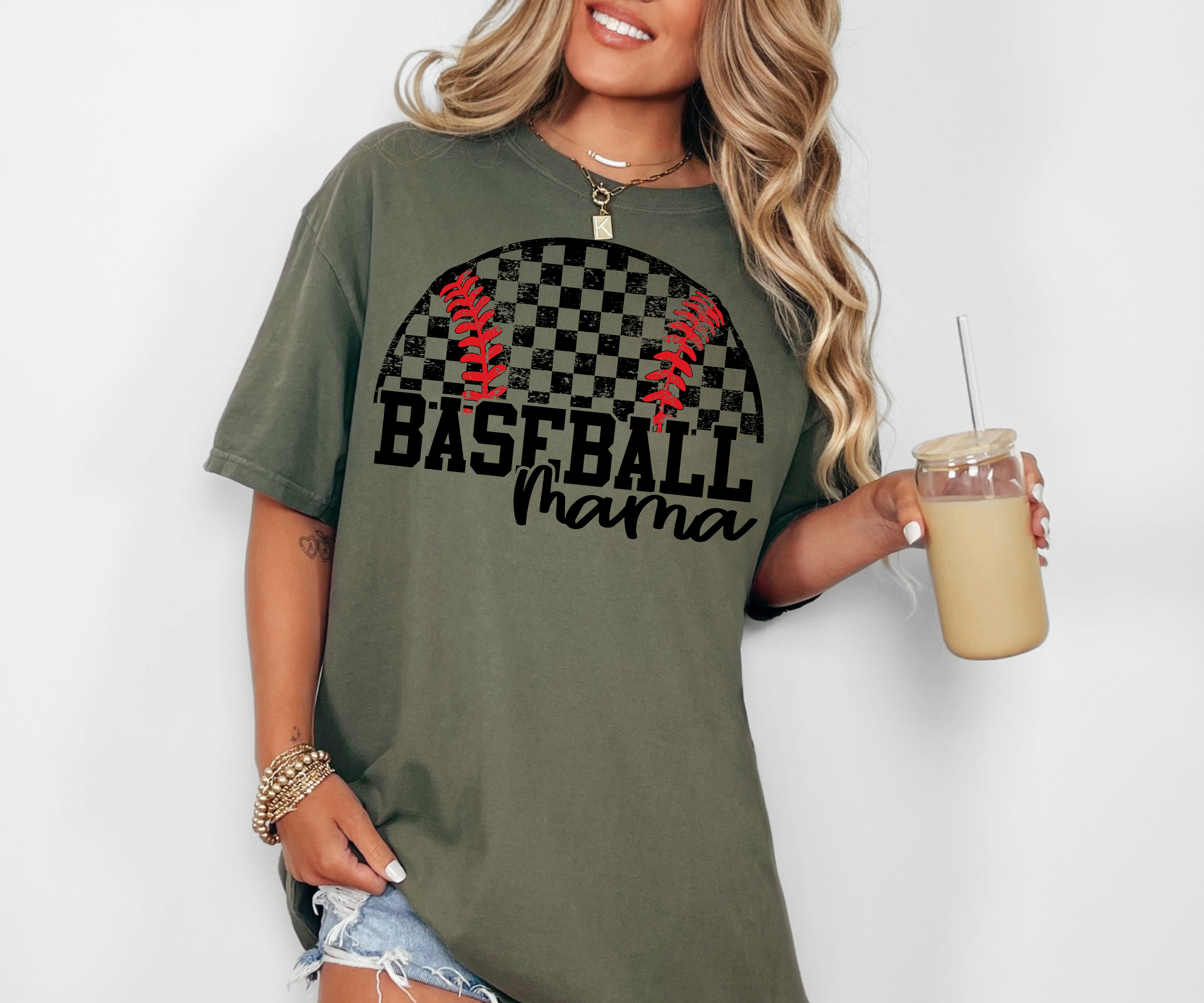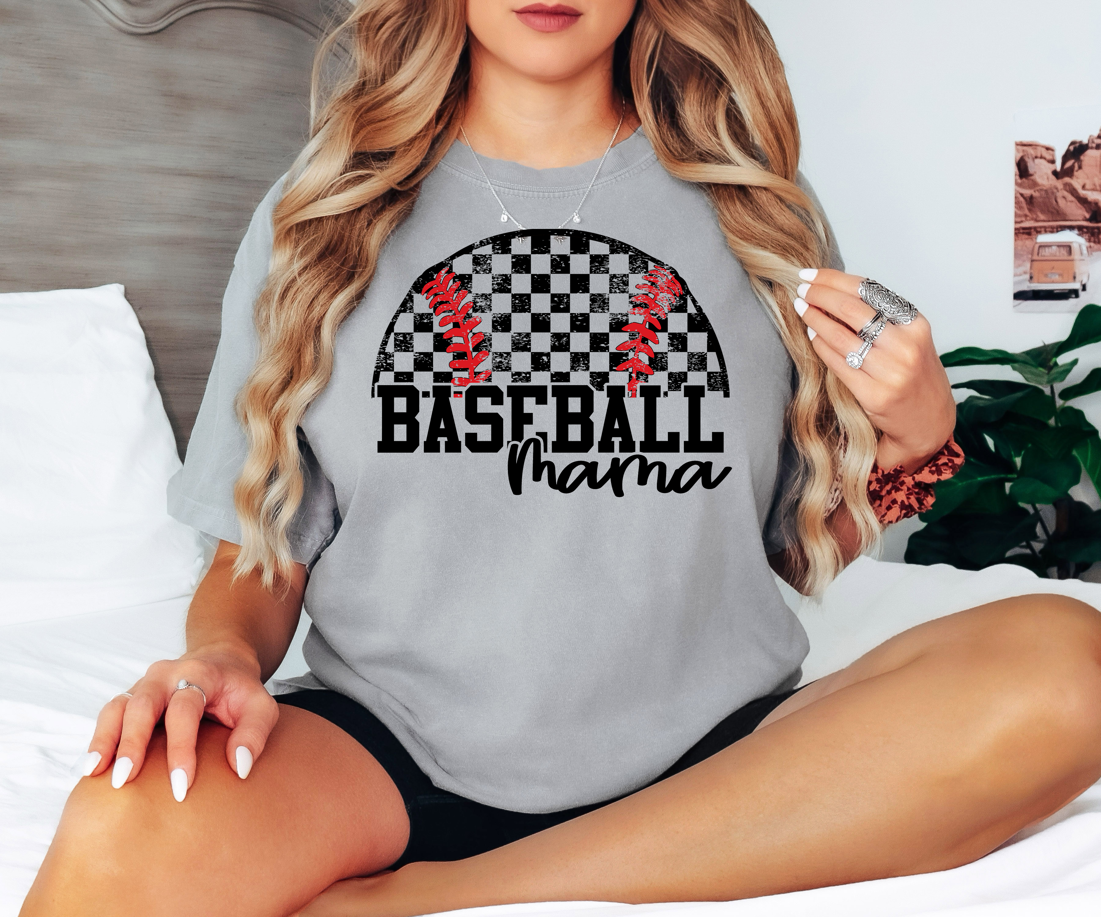 Distressed Checker Baseball Mama DTF Print