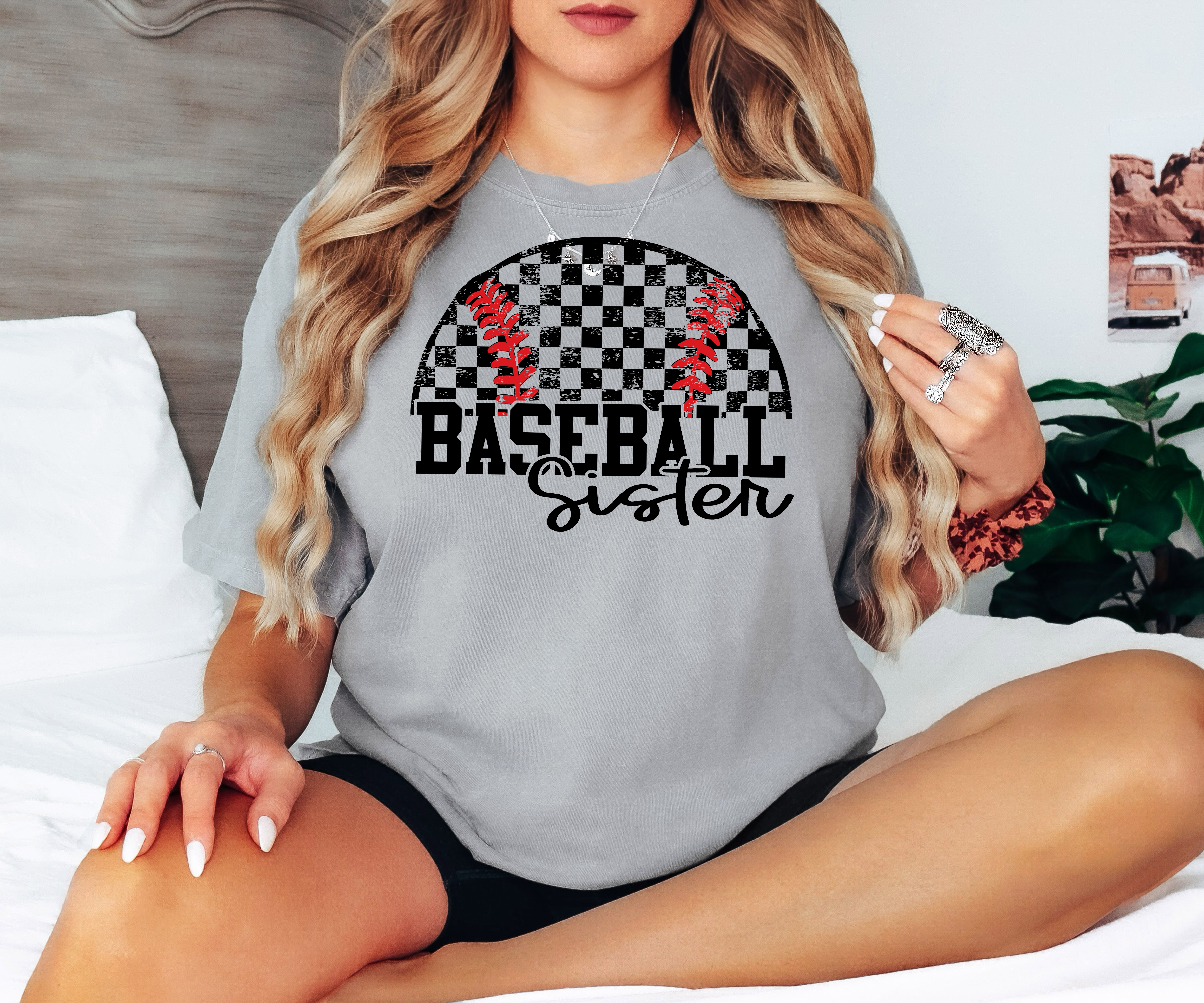 Distressed Checker Baseball Sister DTF Print