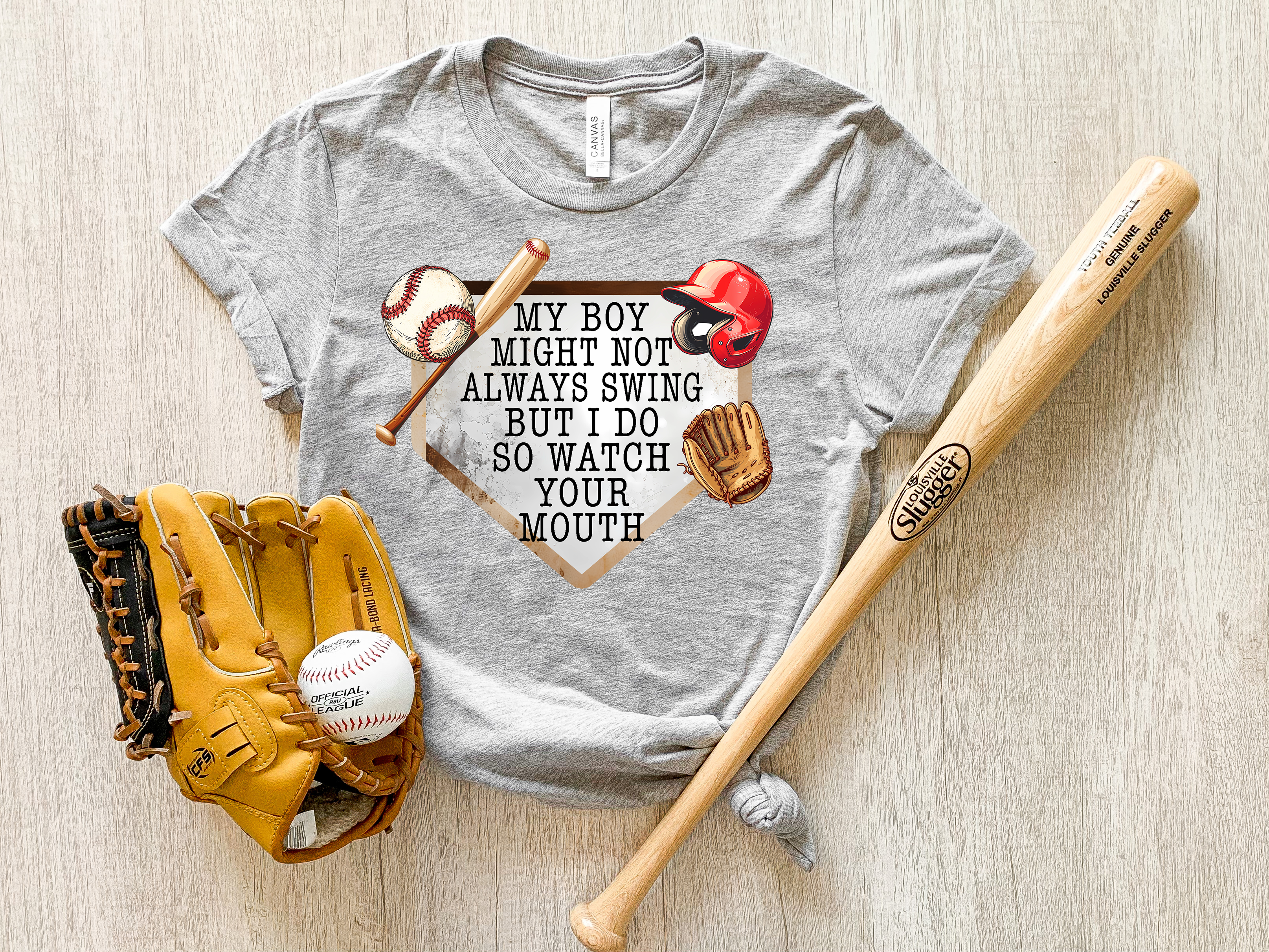My Boy Might Not Swing But I Do So Watch Your Mouth Baseball DTF Print
