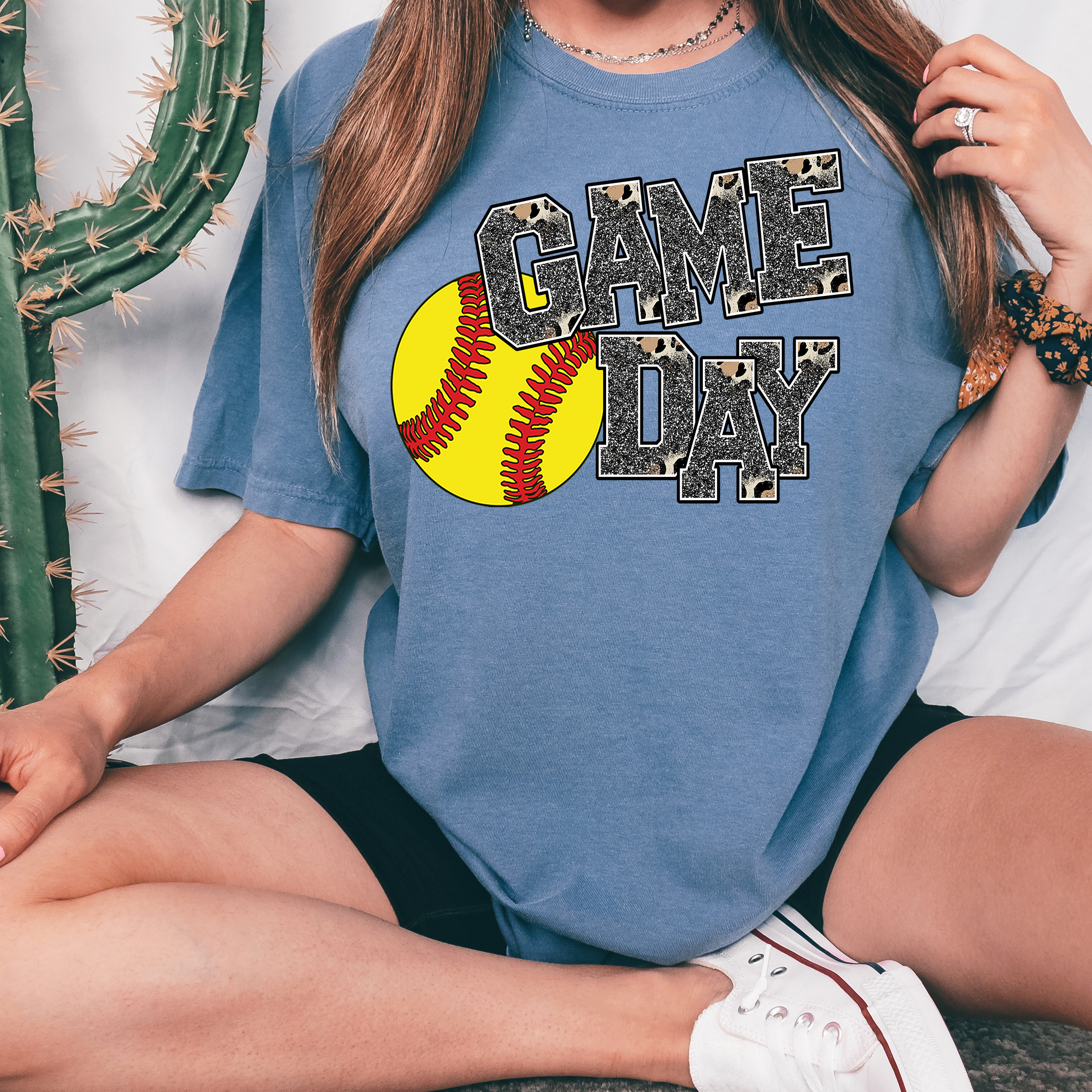 Game Day Softball Faux Glitter DTF Print
