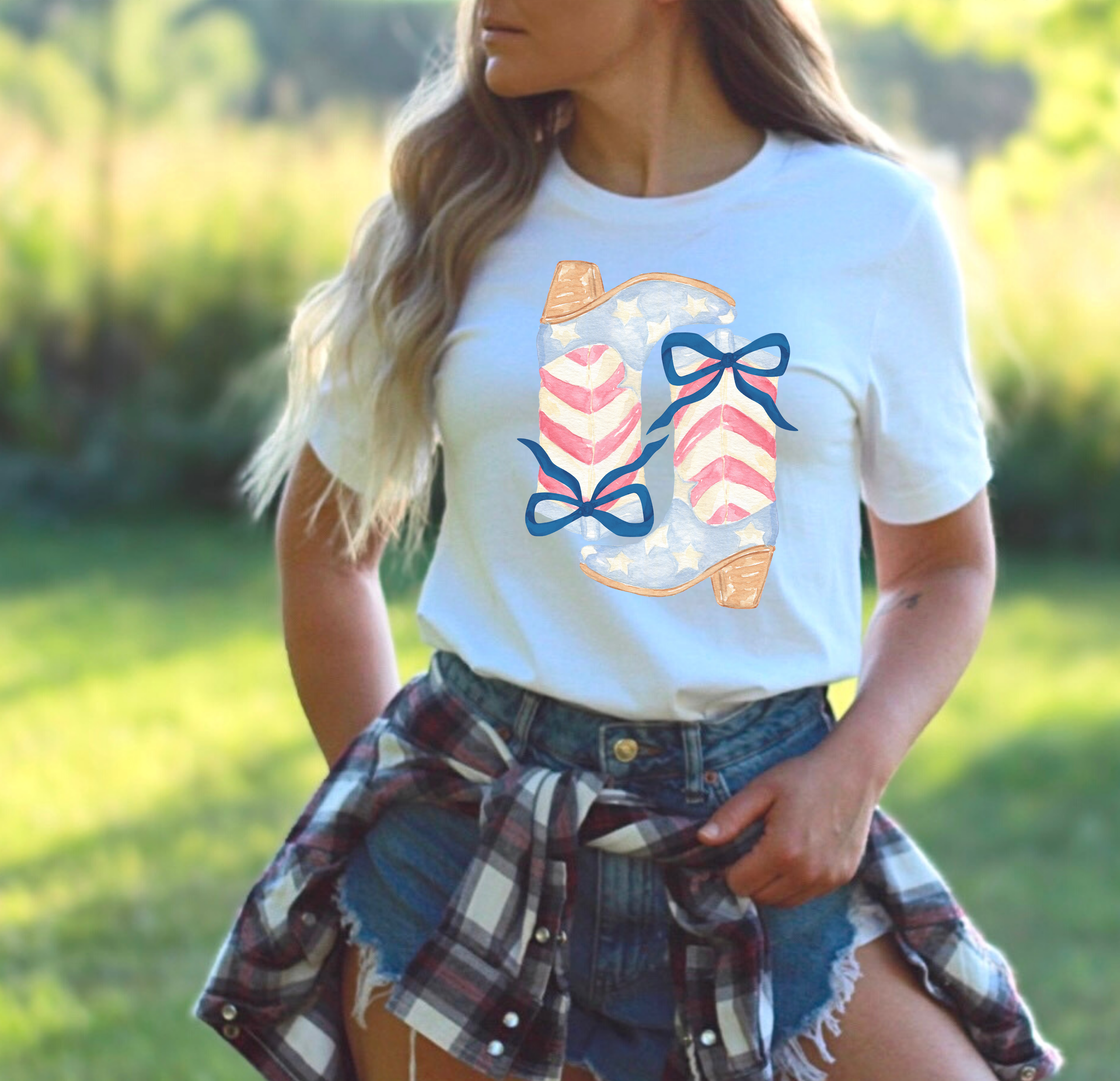 Coquette Patriotic Watercolor Boots DTF Print