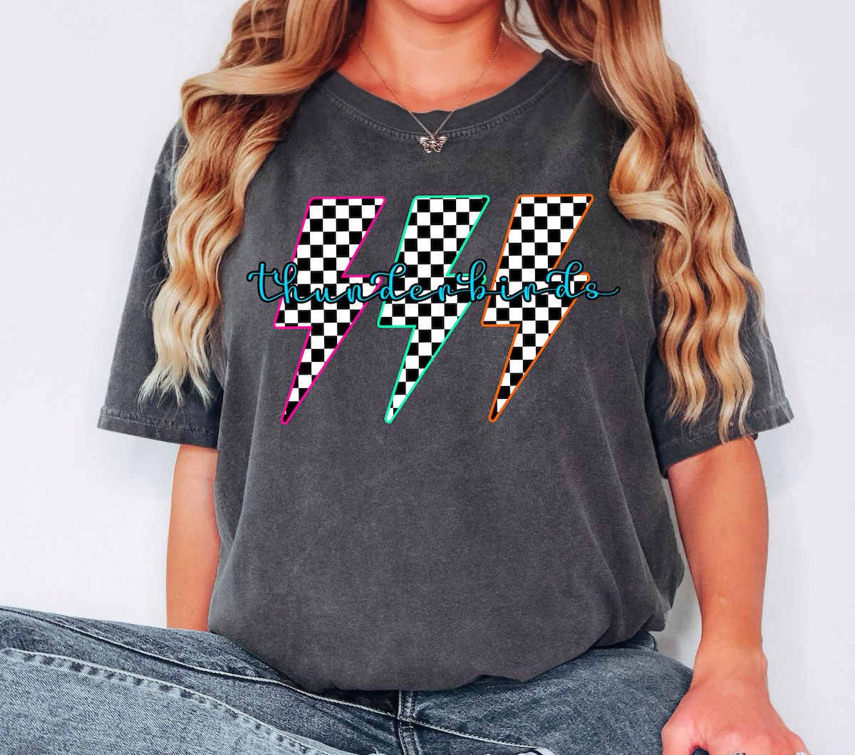 Thunderbirds Retro Bolt Checker Teams Neon Outline DTF Print