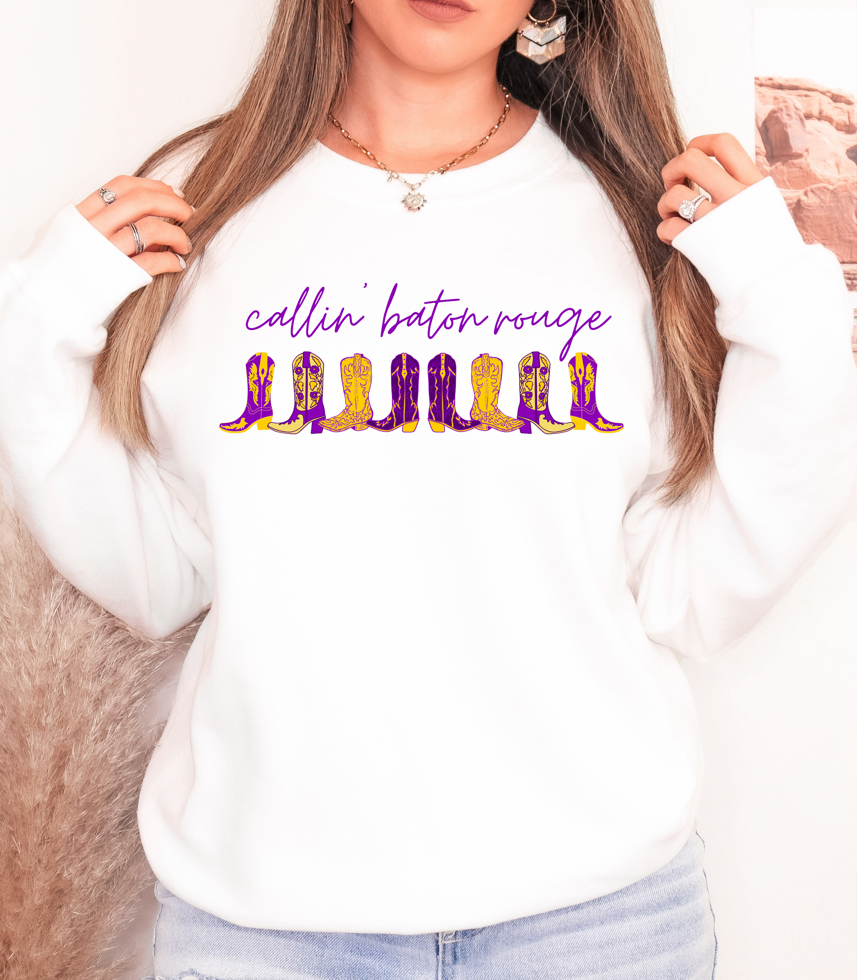Callin Baton Rouge Purple Gold Boots DTF Print
