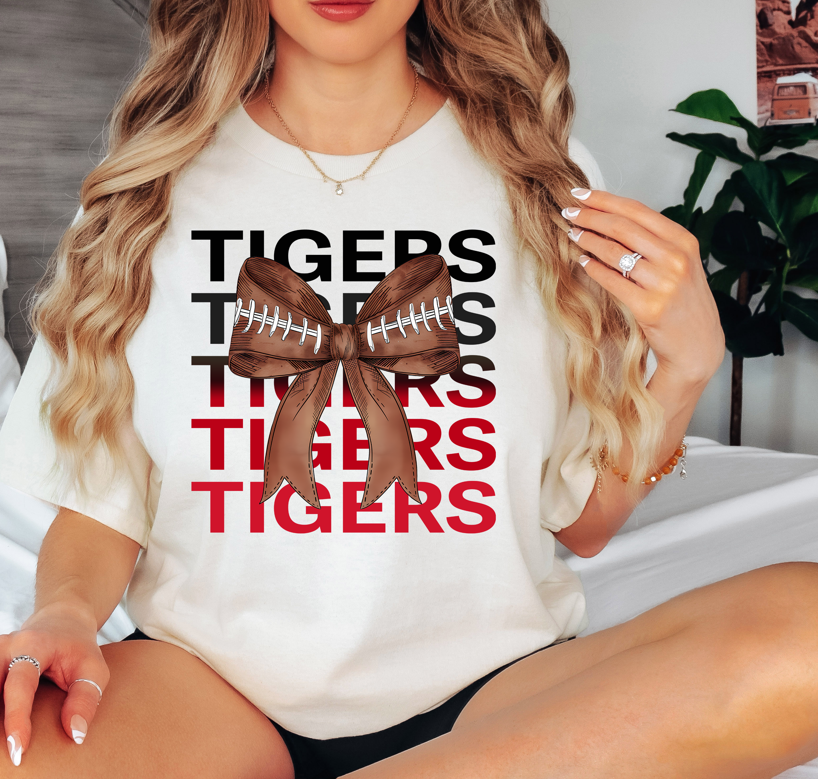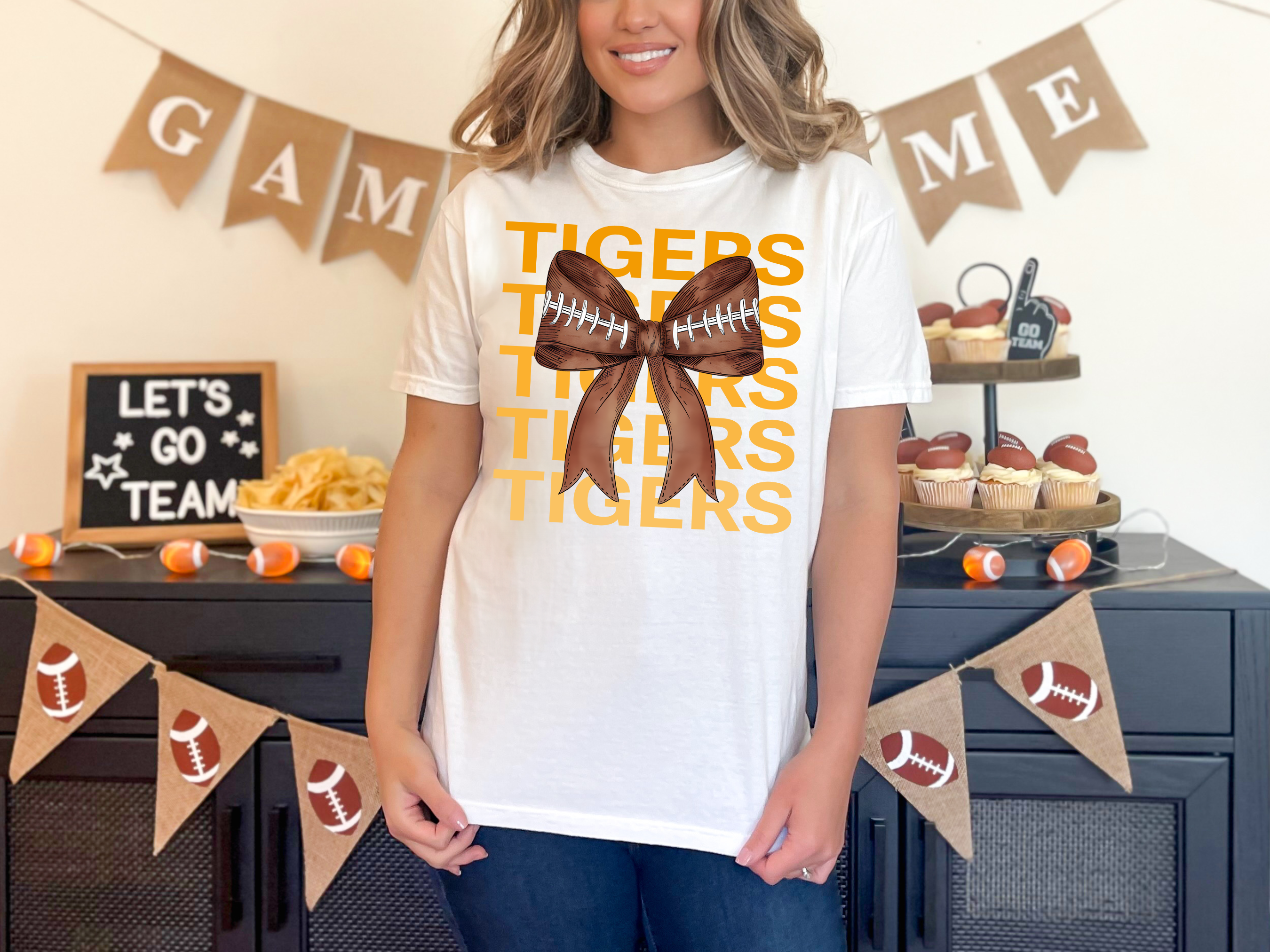 Tigers Repeat Football Bow DTF Print
