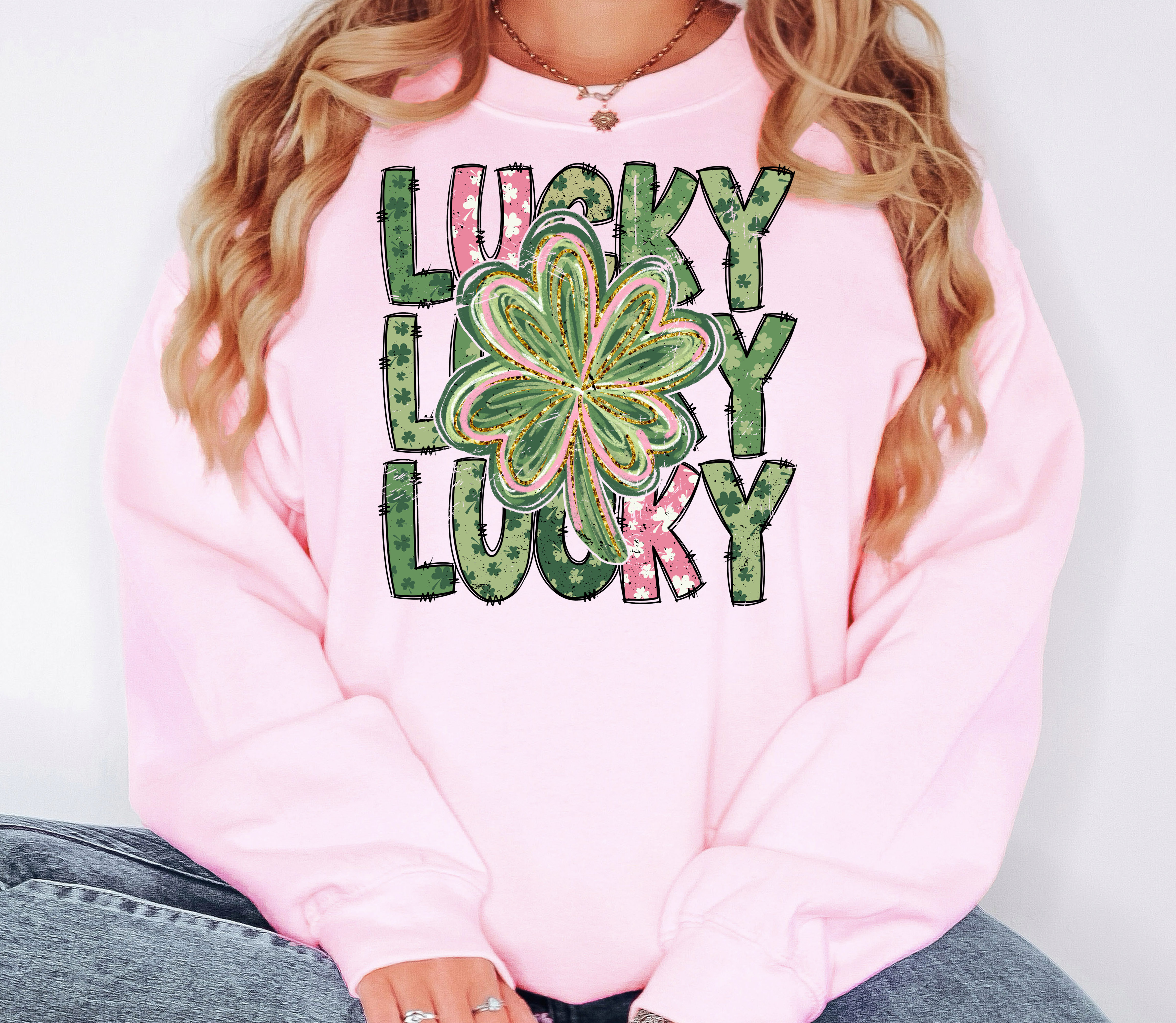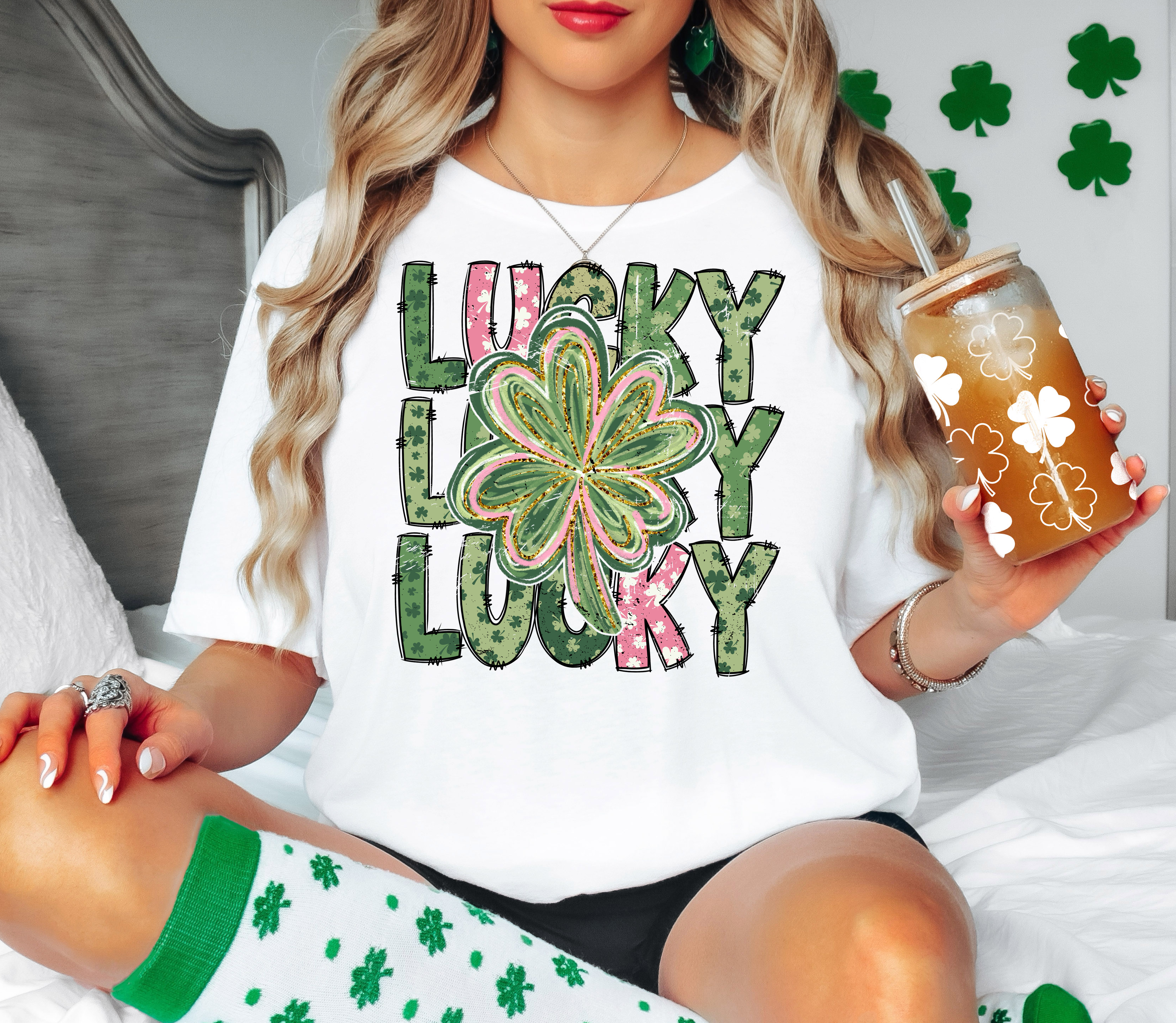 Lucky Repeat Watercolor Shamrock DTF Print