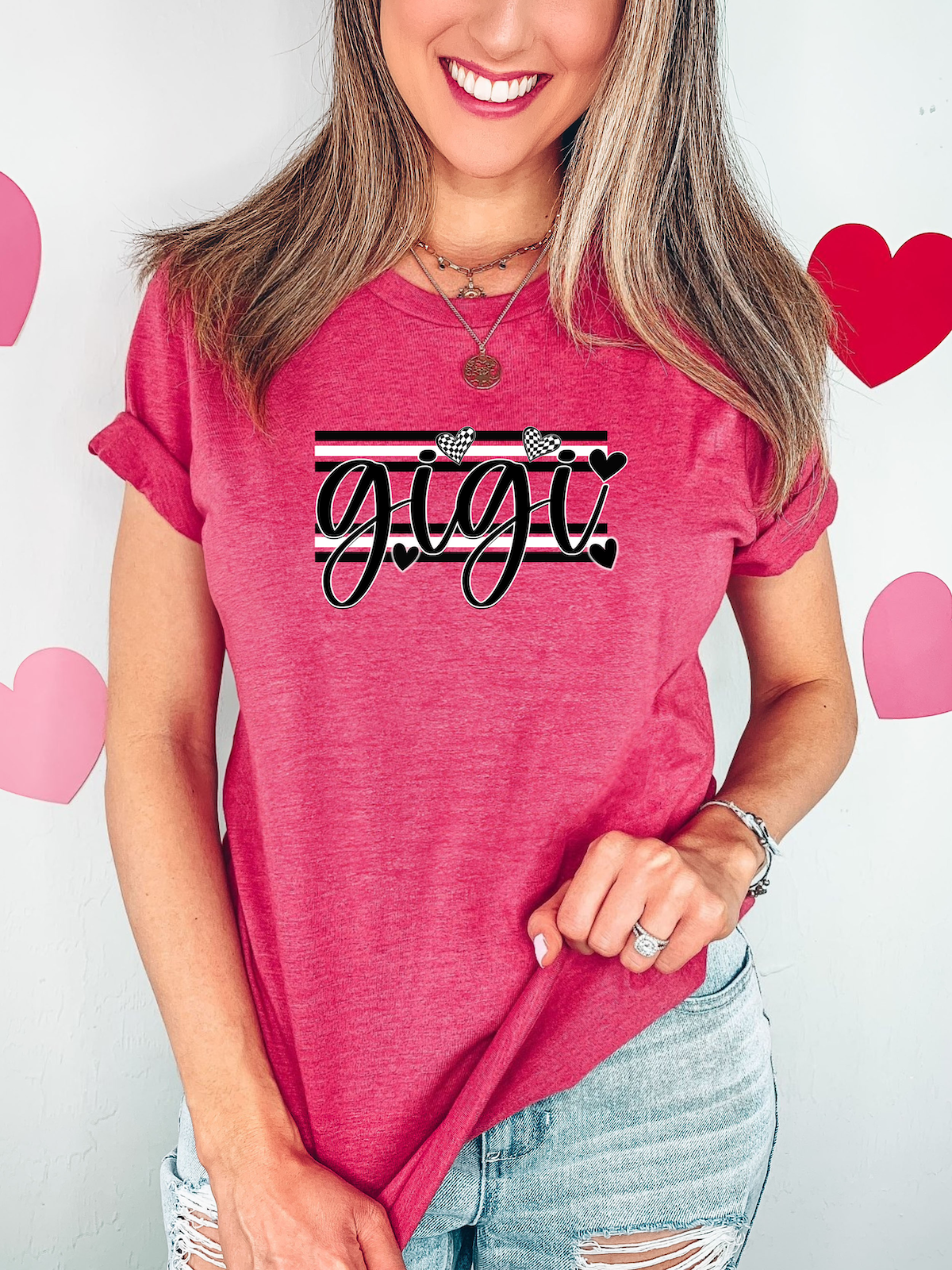 Gigi Black and White Hearts DTF Print