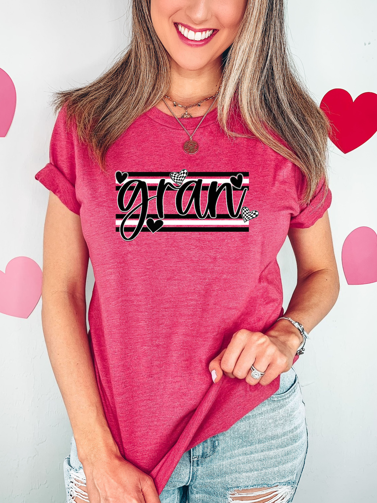 Gran Black and White Hearts DTF Print