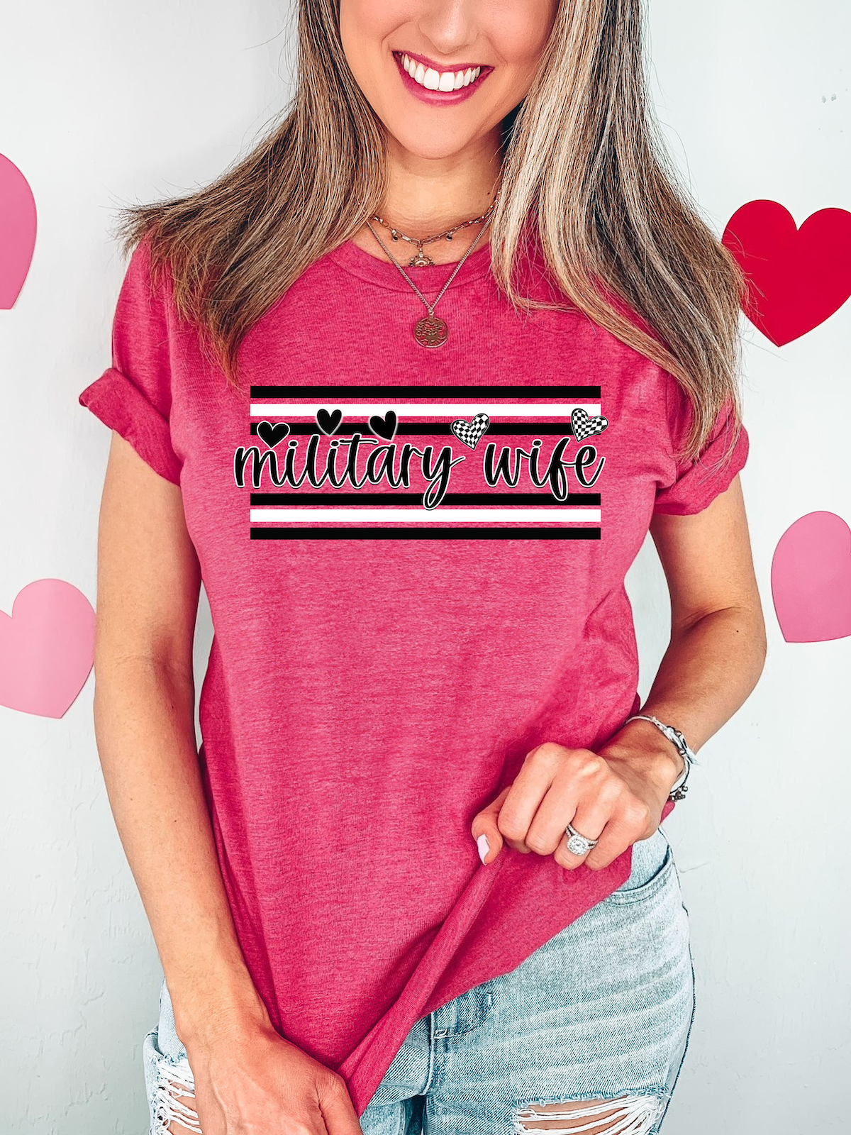 Military Wife Black and White Hearts DTF Print