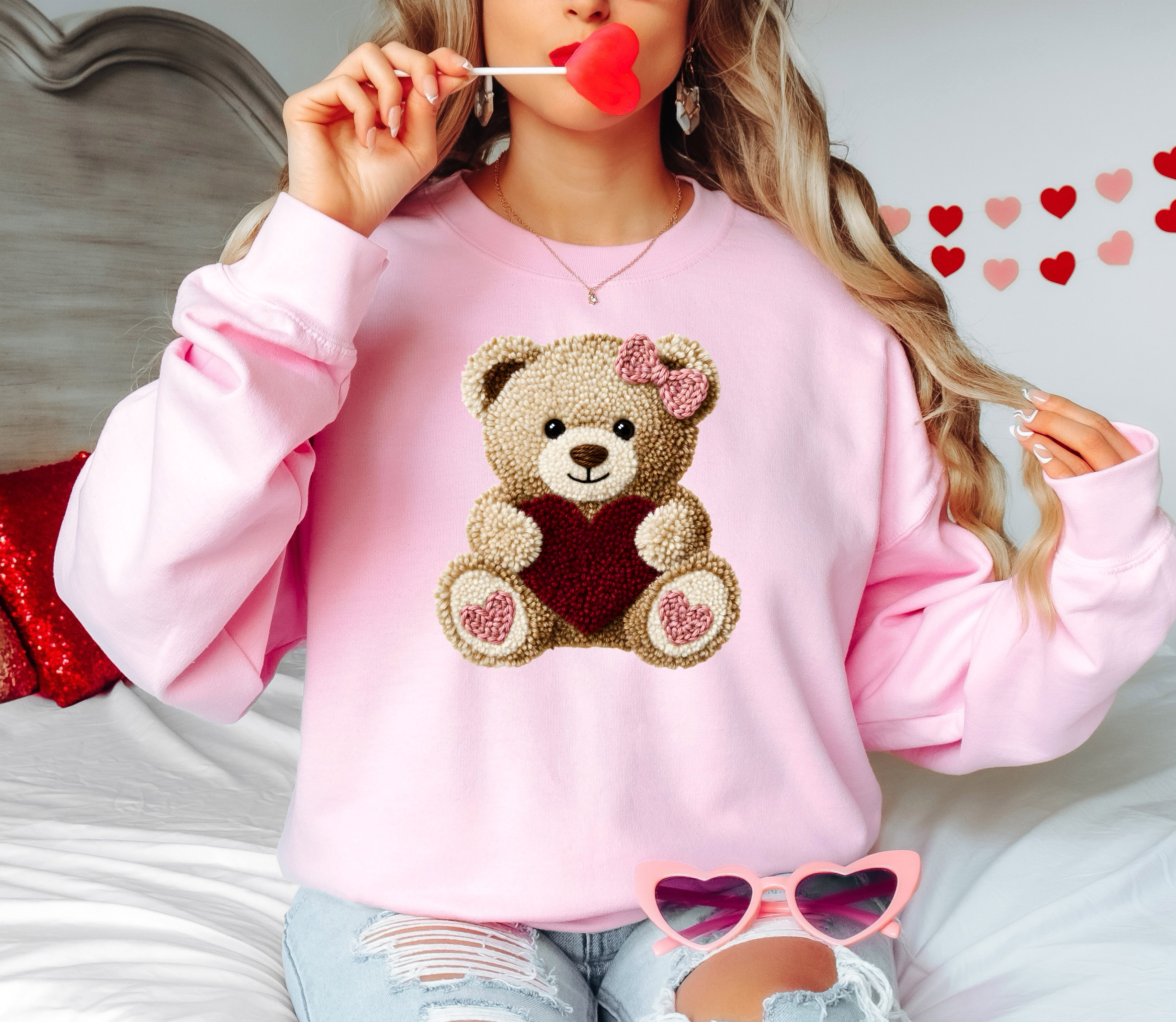 Valentine Yarn Teddy Bear DTF Print