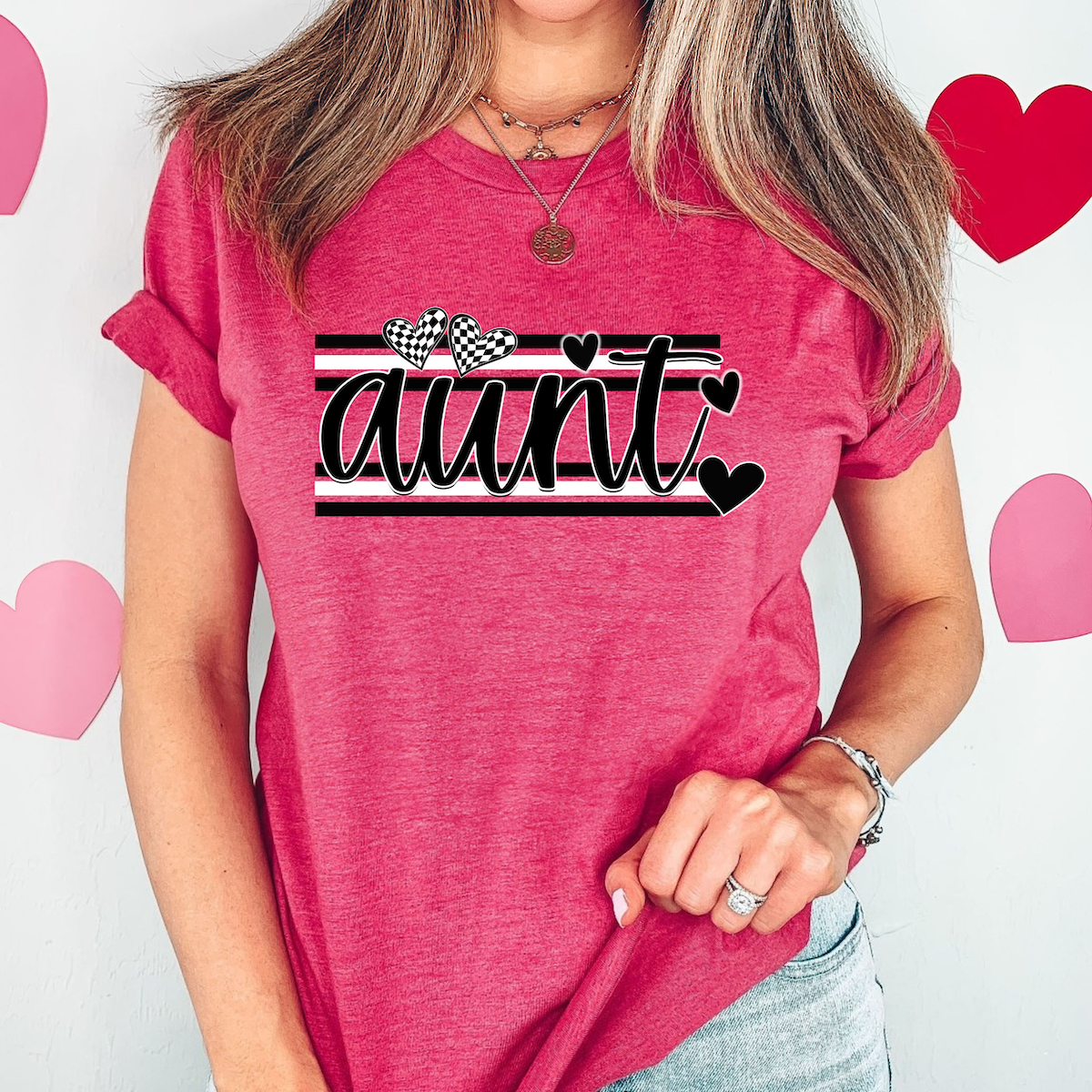Aunt Black and White Hearts DTF Print