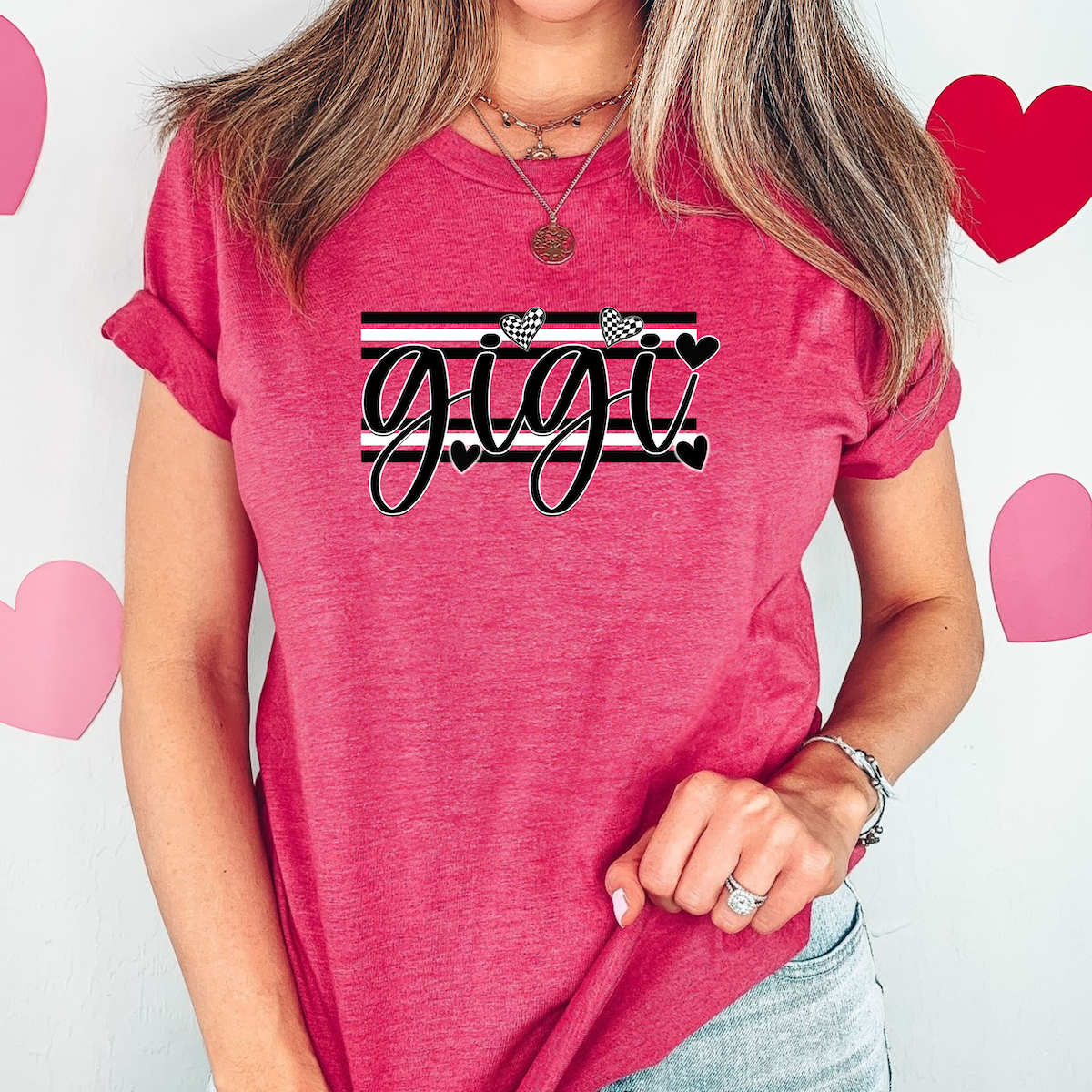 Gigi Black and White Hearts DTF Print