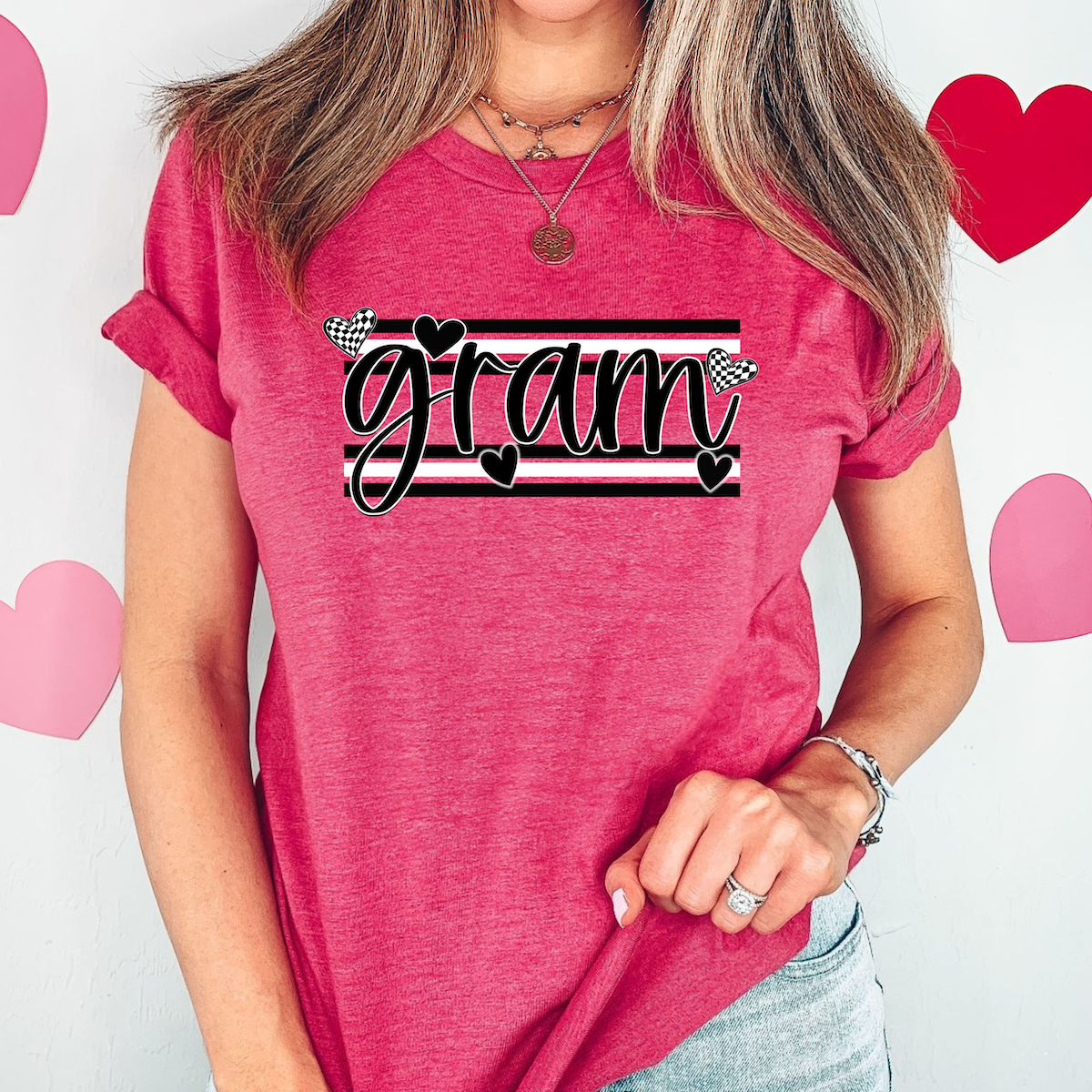 Gram Black and White Hearts DTF Print