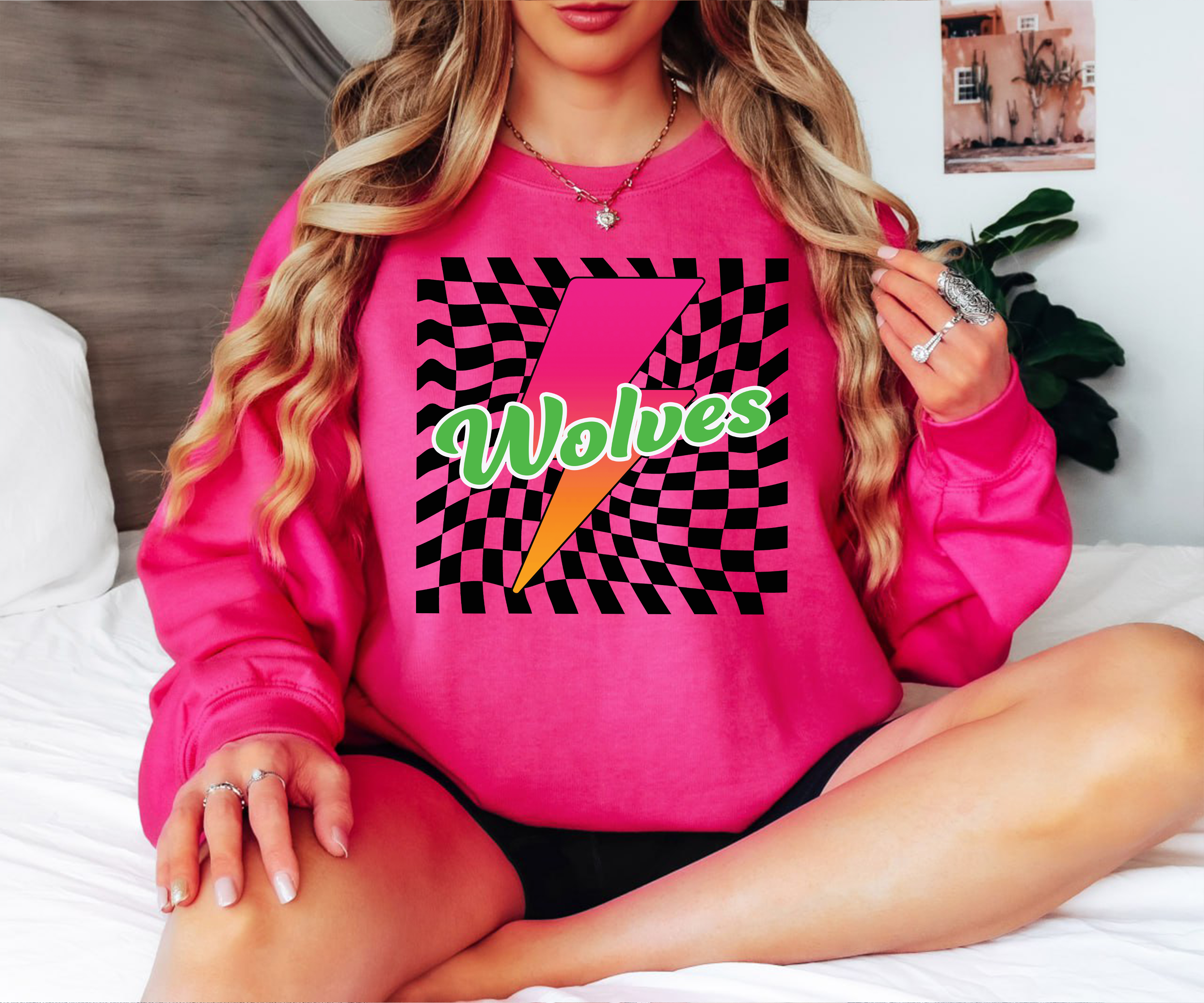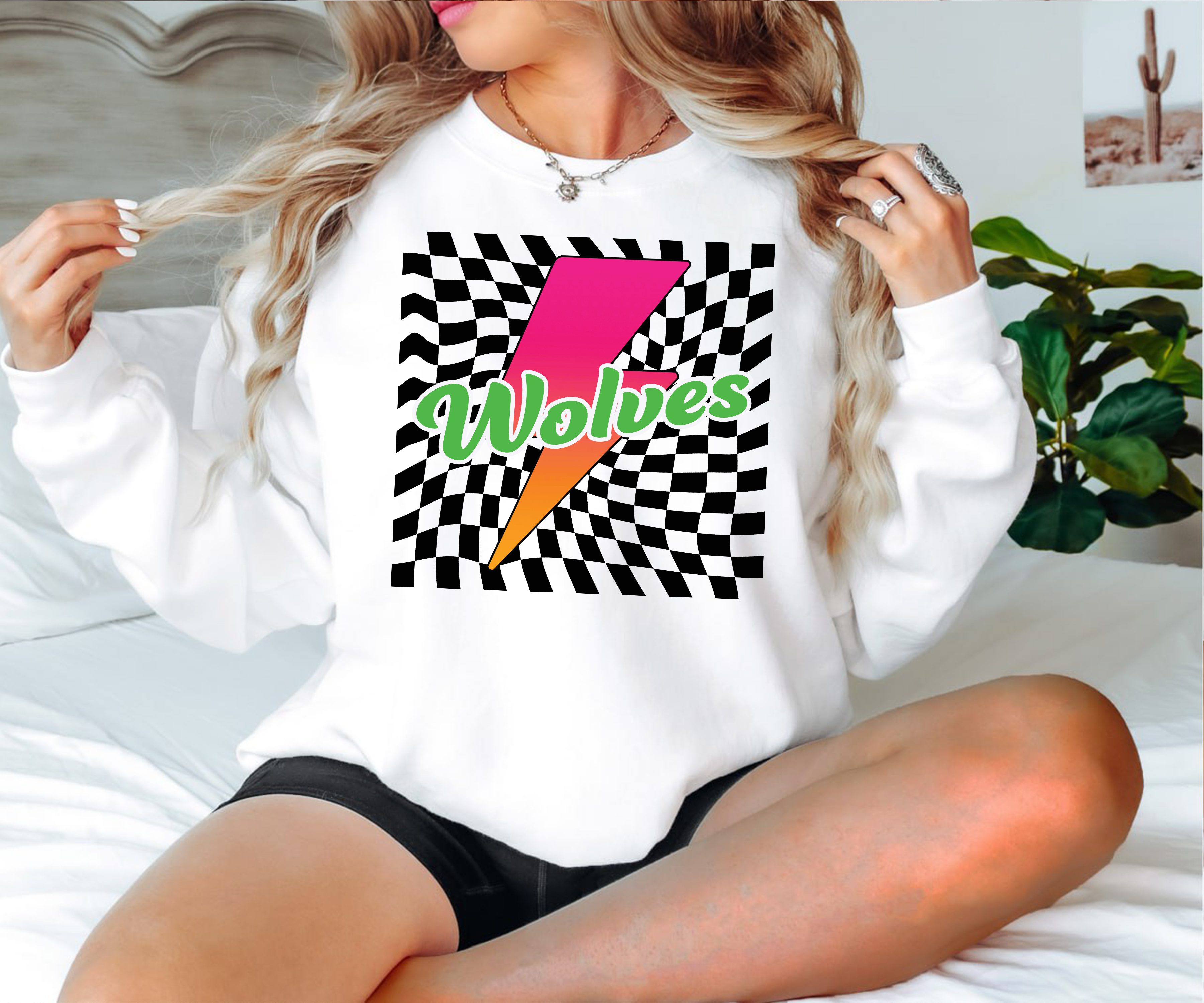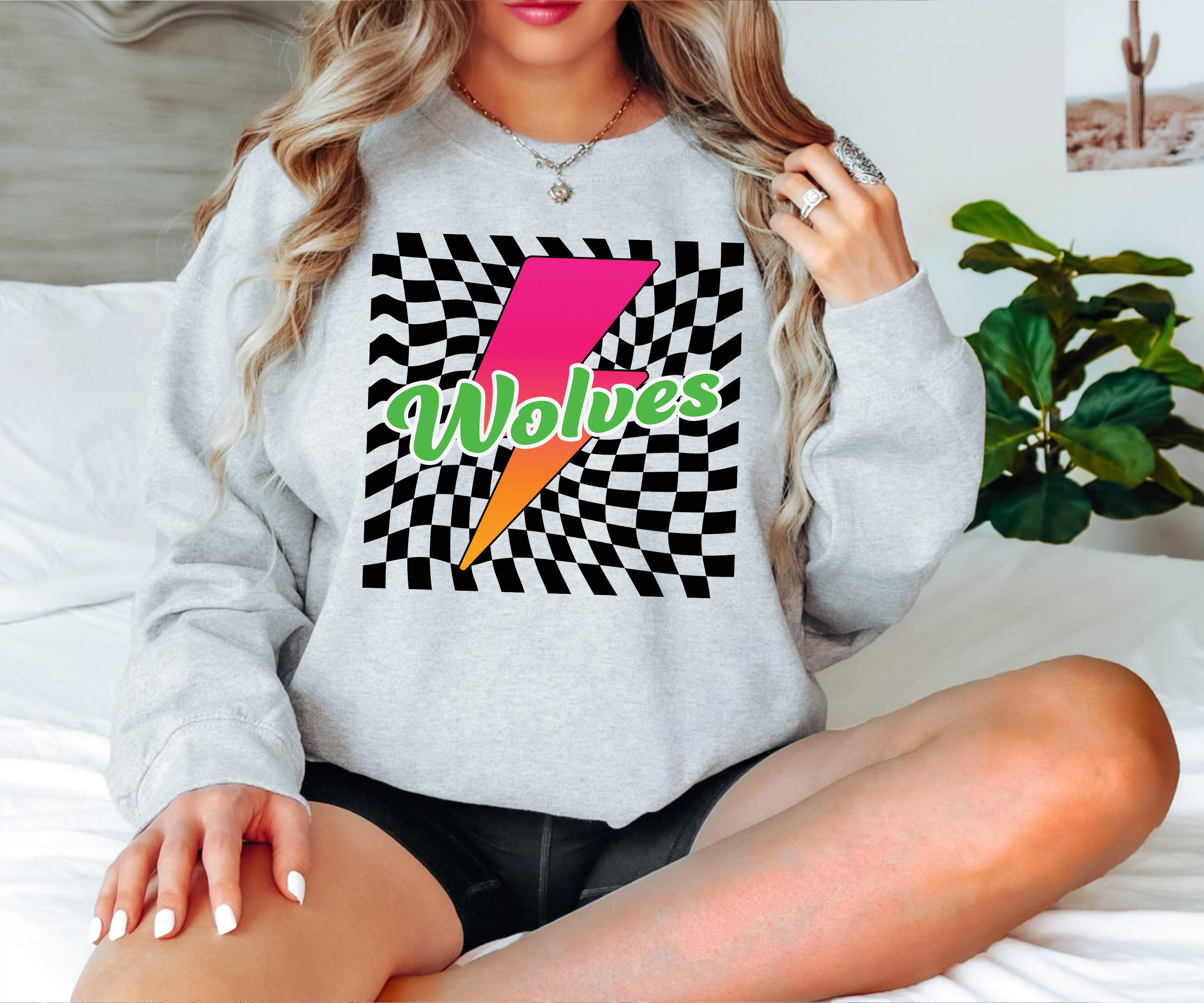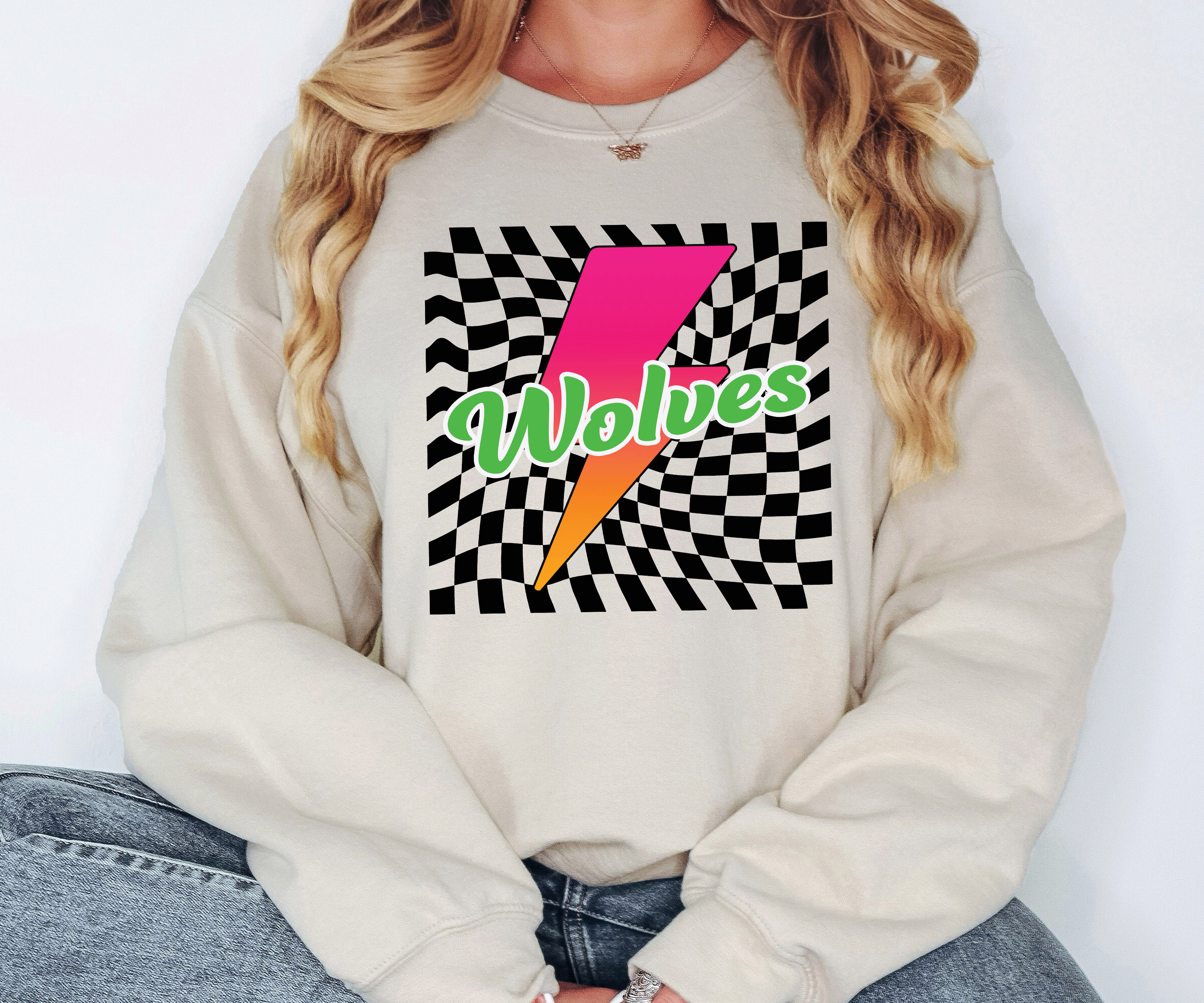 Wolves Checker Leopard Bolt DTF Print