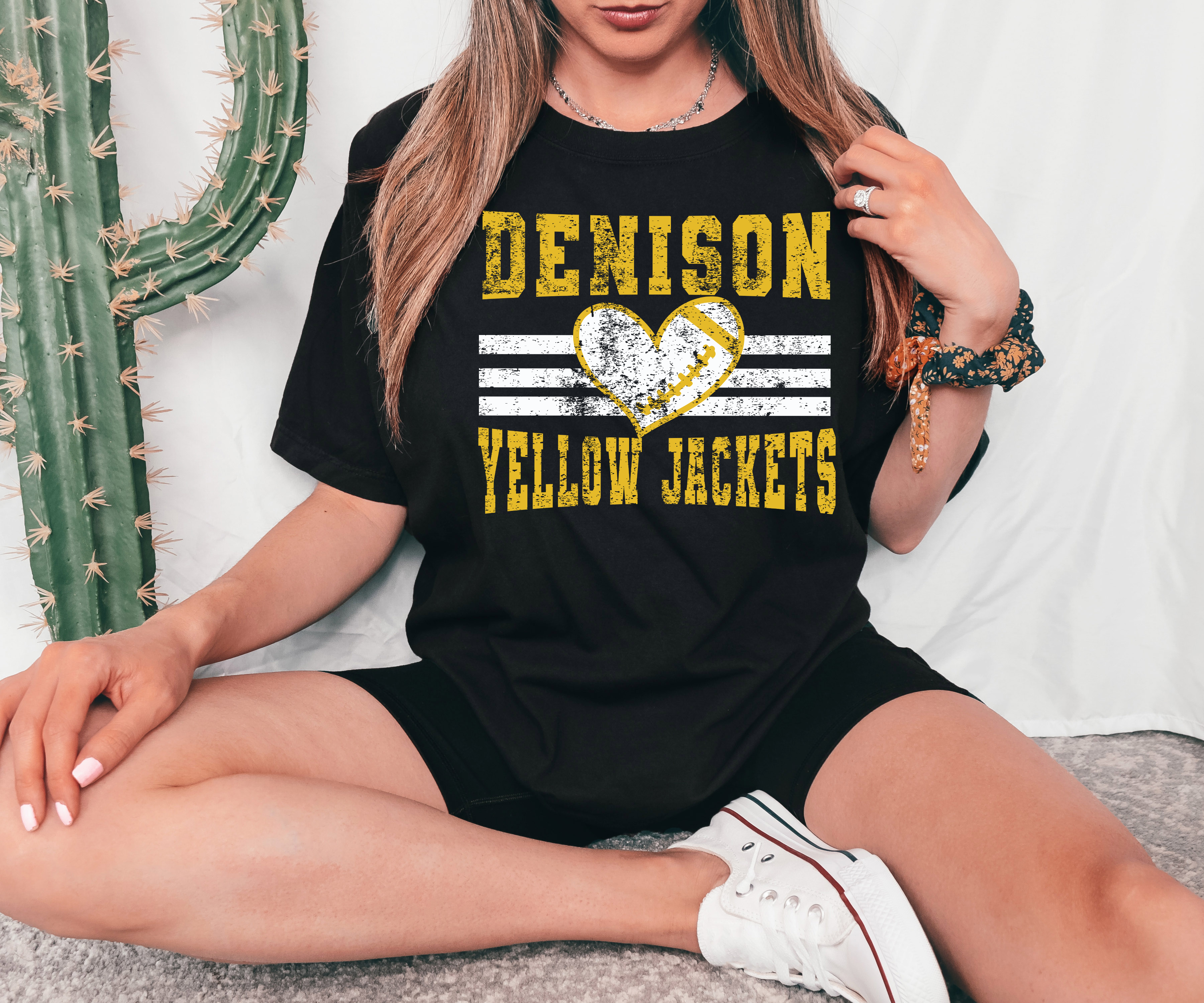Denison Yellow Jackets Grunge Heart Football DTF Print