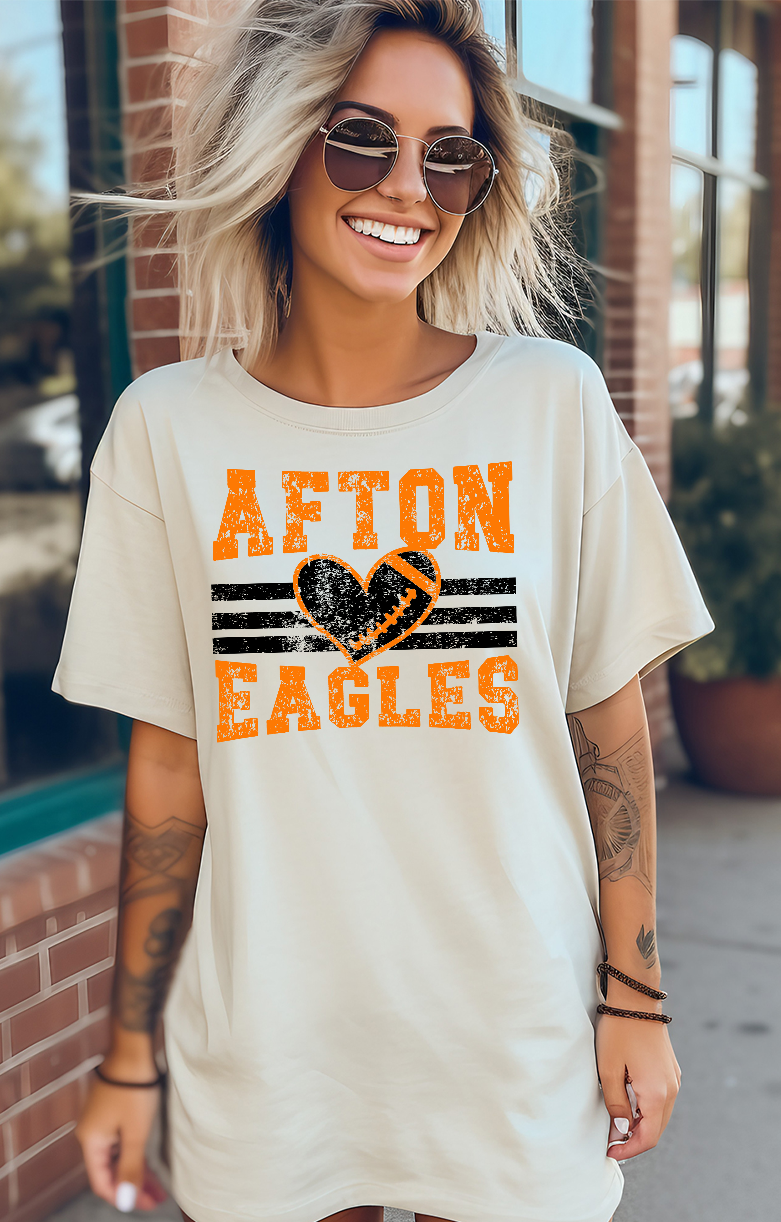 Afton Eagles Grunge Heart Football DTF Print