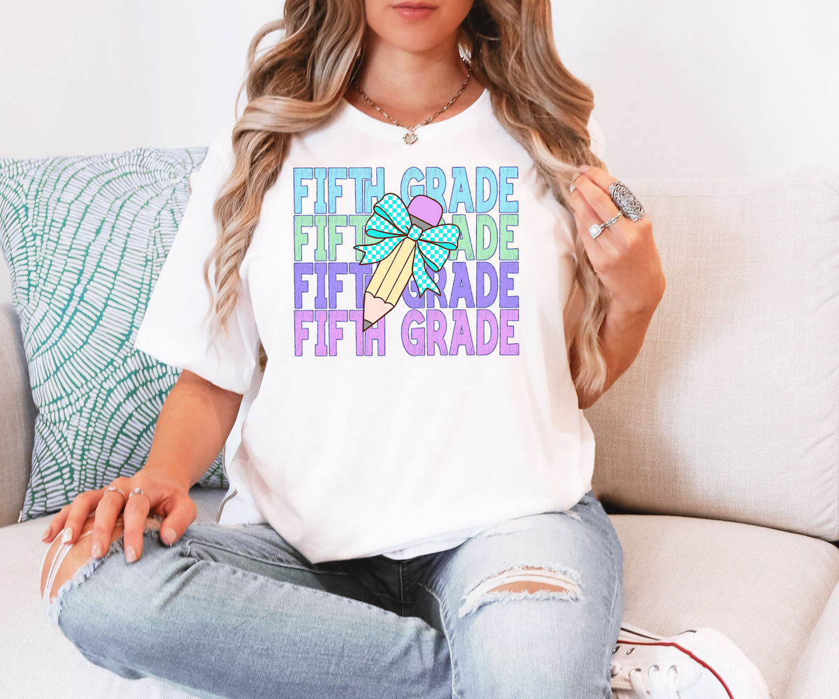 Fifth Grade Bookworm Repeat Checker Pencil DTF Print