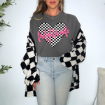 Firefighter Wife Retro Checker Heart Occupations DTF Print