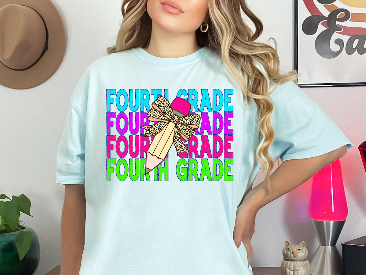 Fourth Grade Bookworm Repeat Leopard Pencil DTF Print