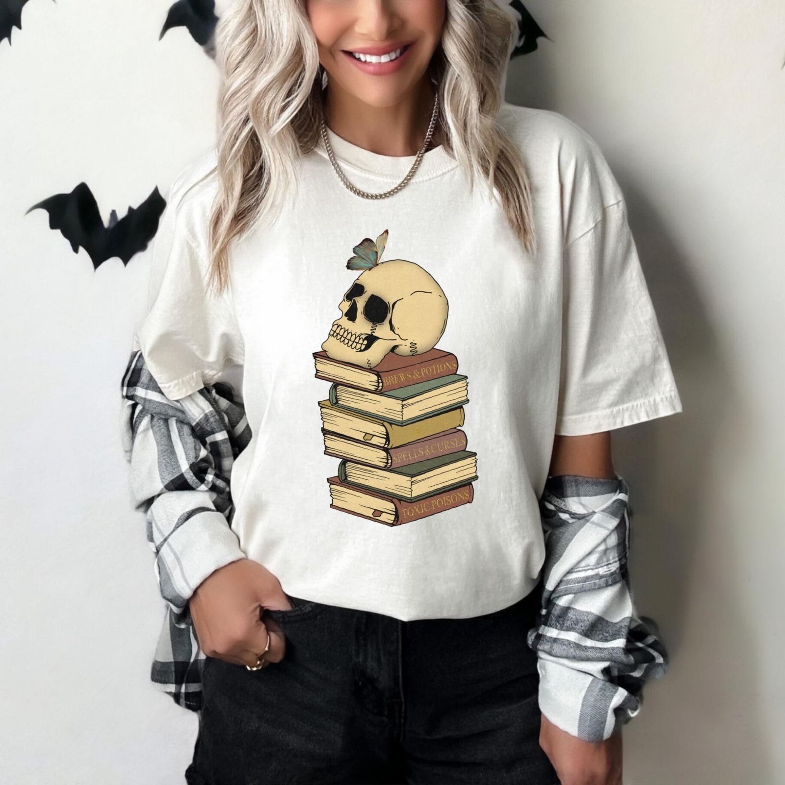 Halloween Skull Book Stack DTF Print
