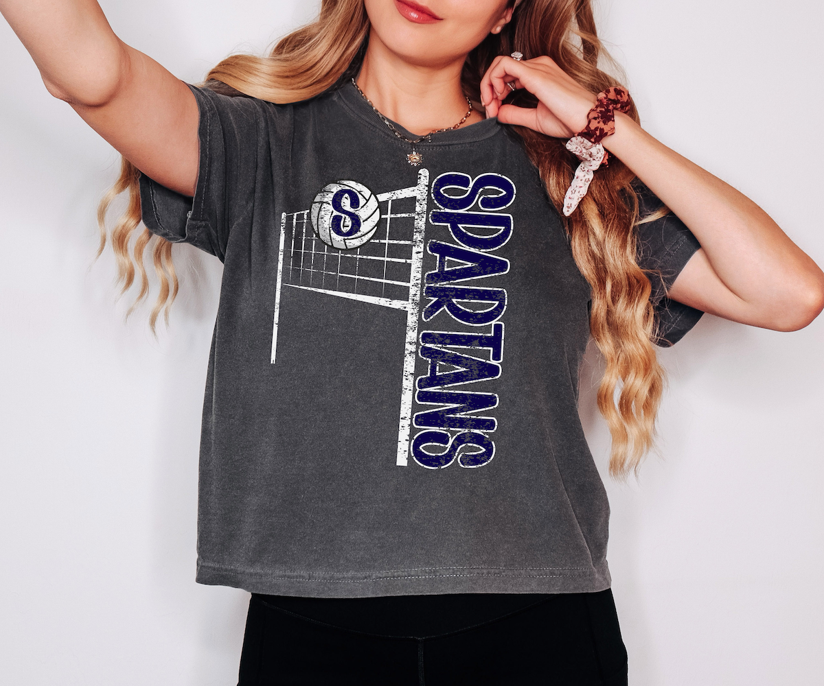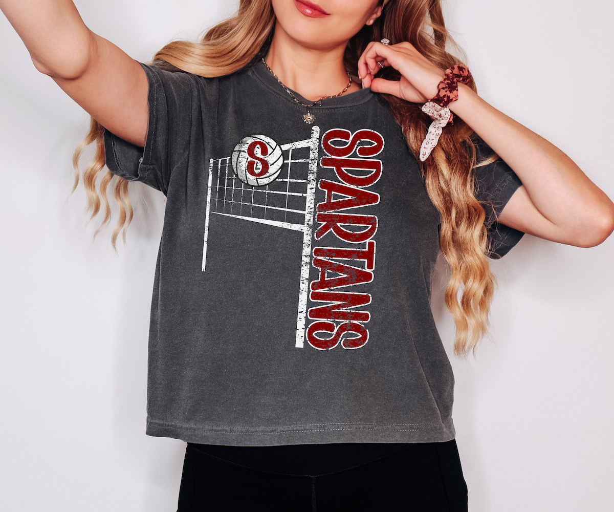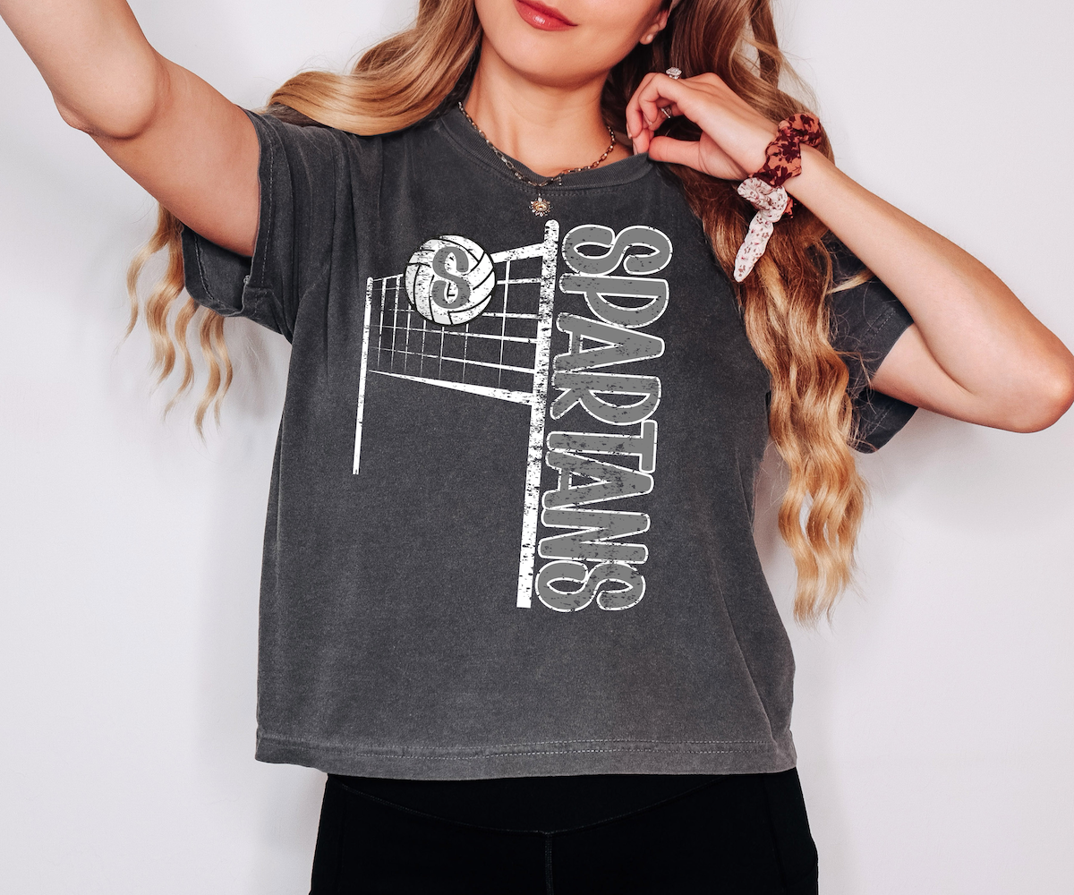 Spartans Team Volleyball Net Distressed DTF Print