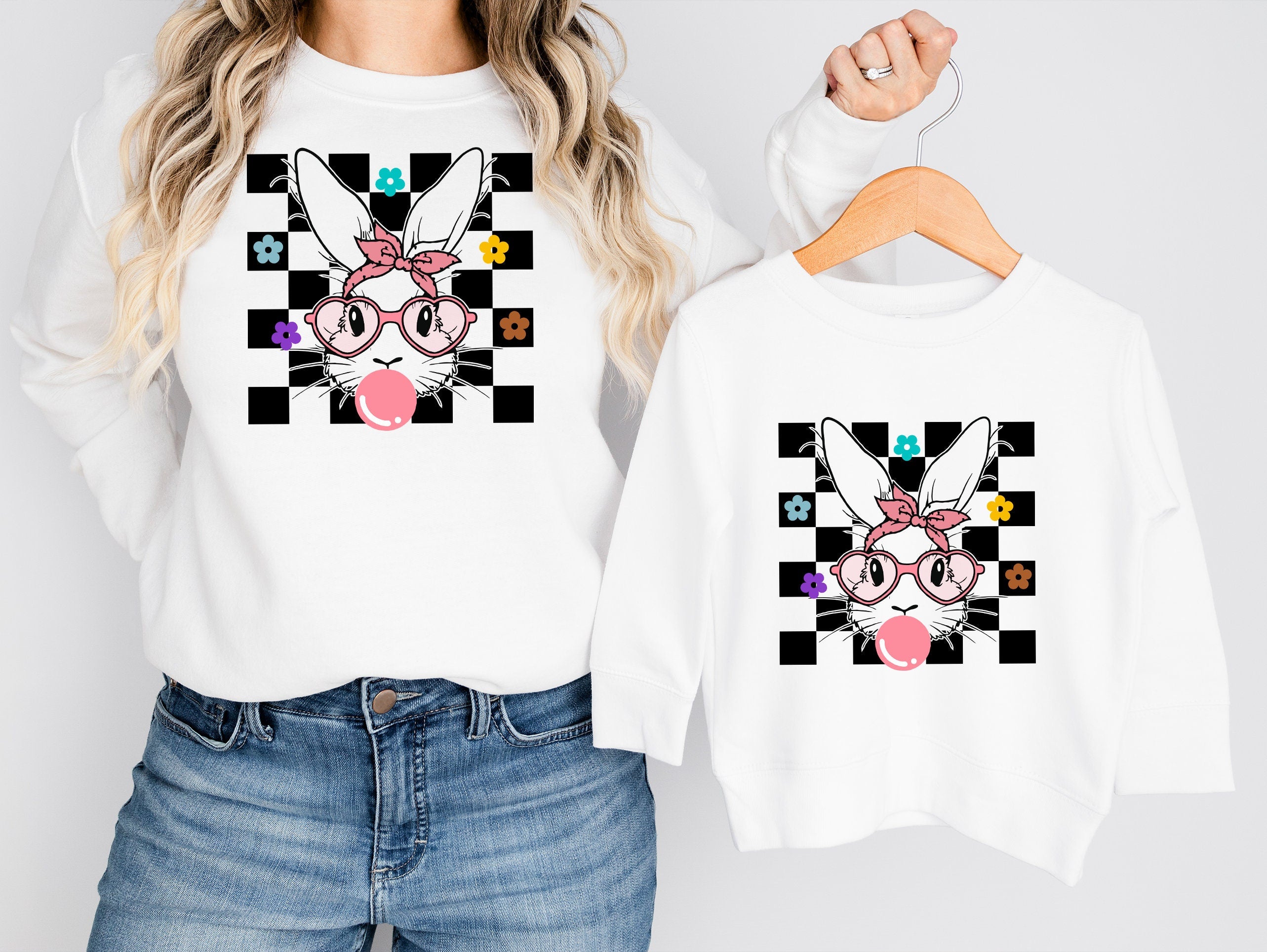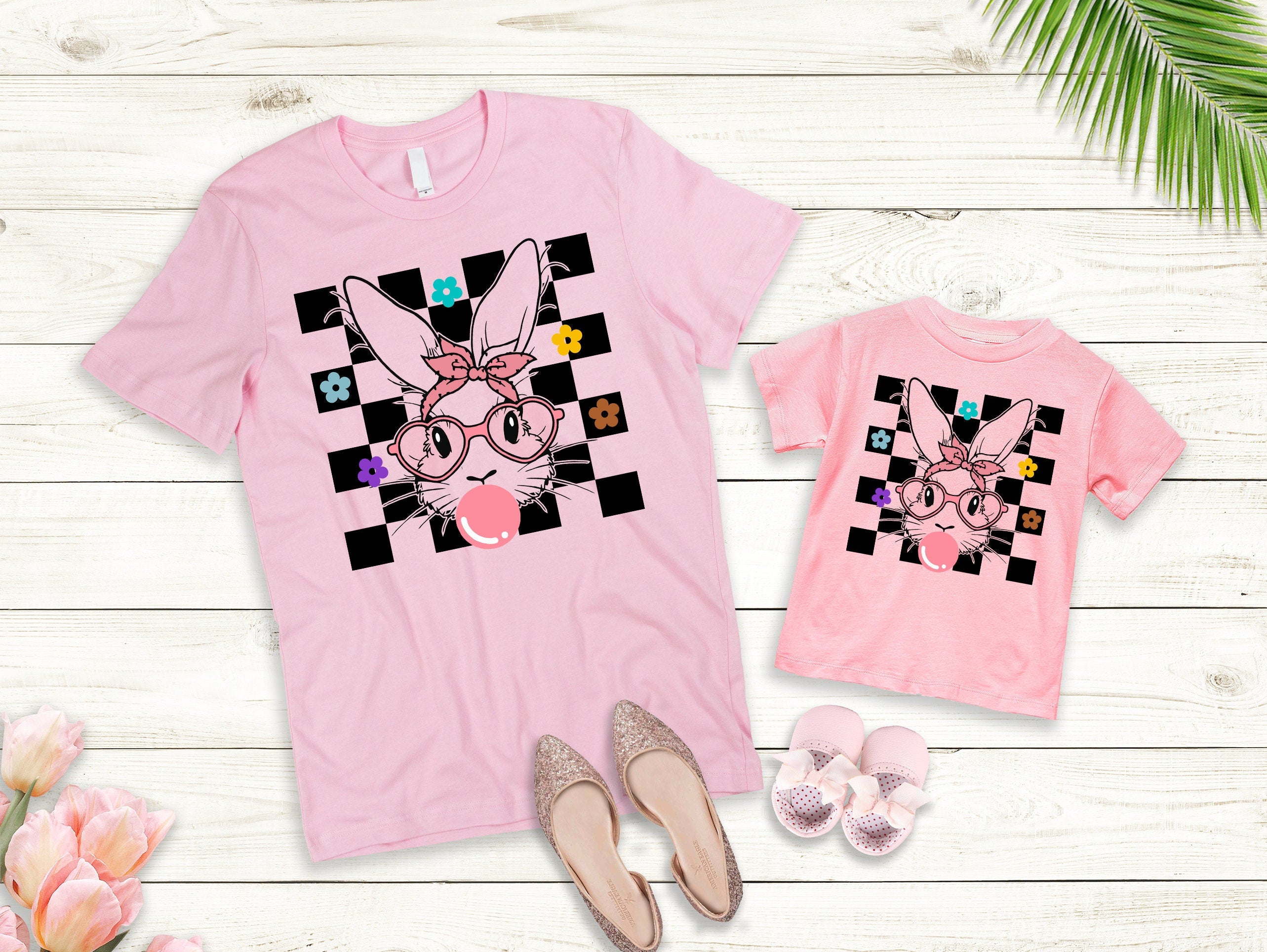 Bunny Checkerboard Easter DTF Print