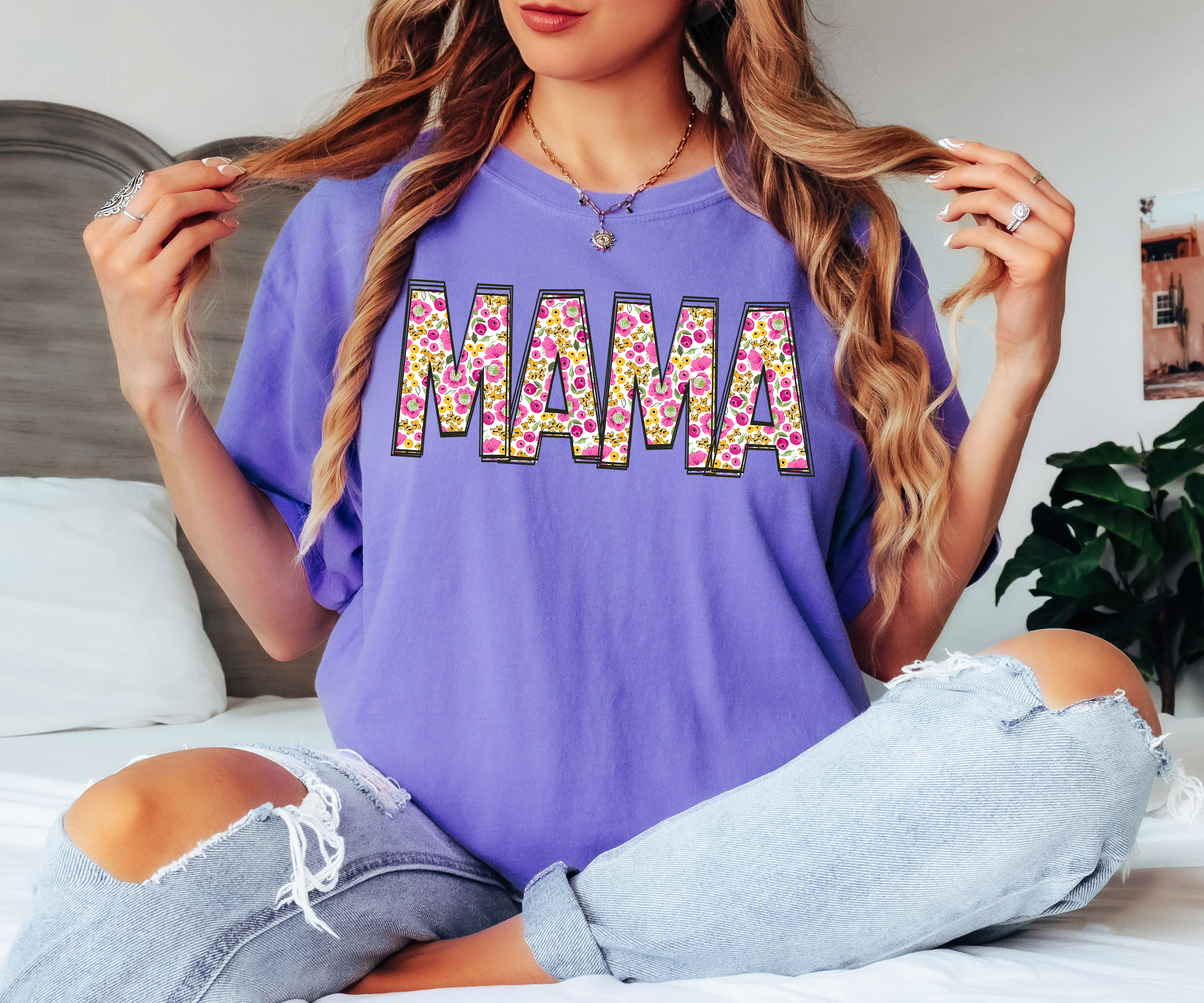 Mama Sunshine Days White Floral DTF Print