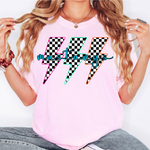Mustangs Retro Bolt Checker Teams Neon Outline DTF Print
