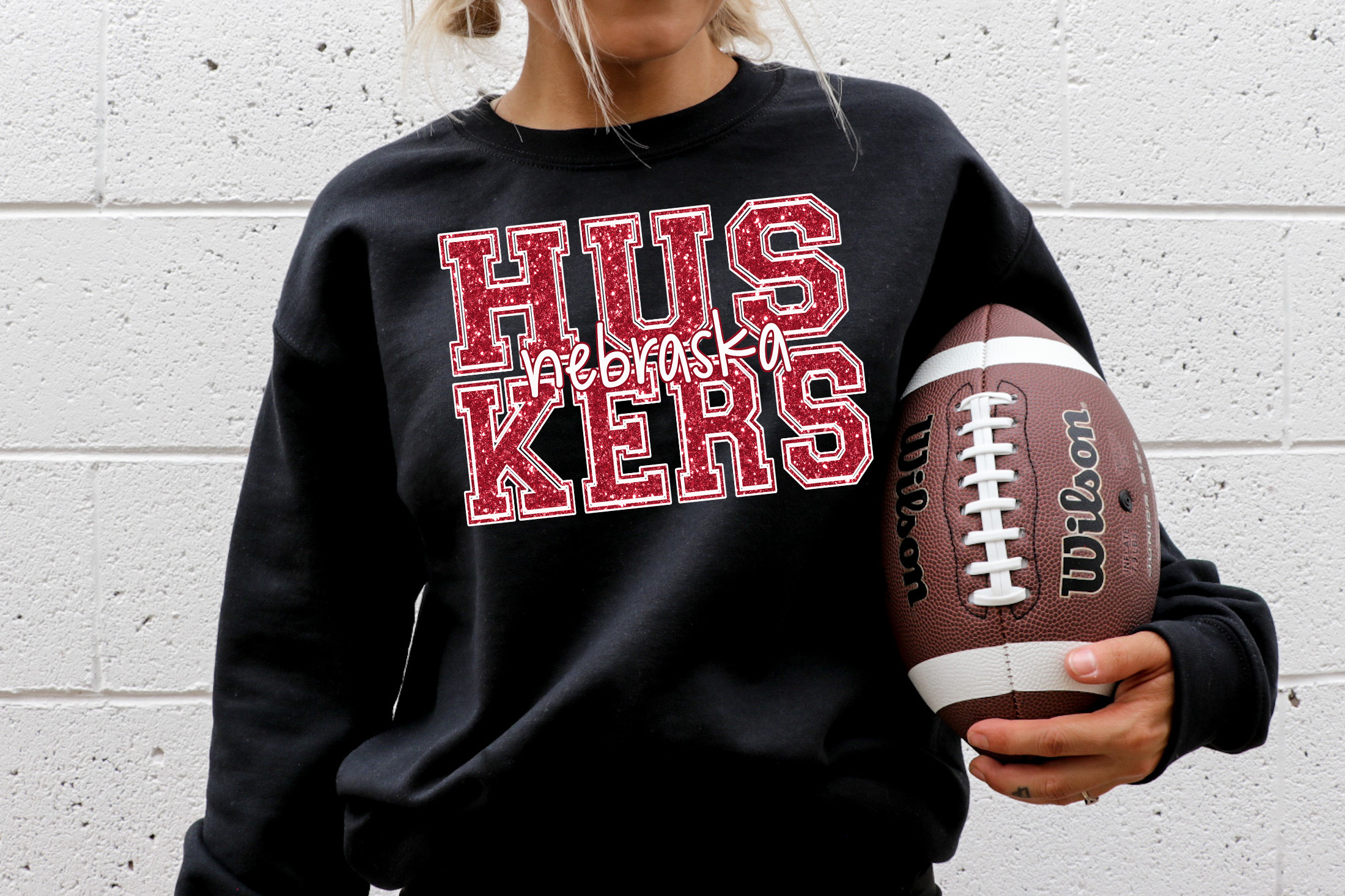 Nebraska Huskers Varsity Glitter Effect DTF Print