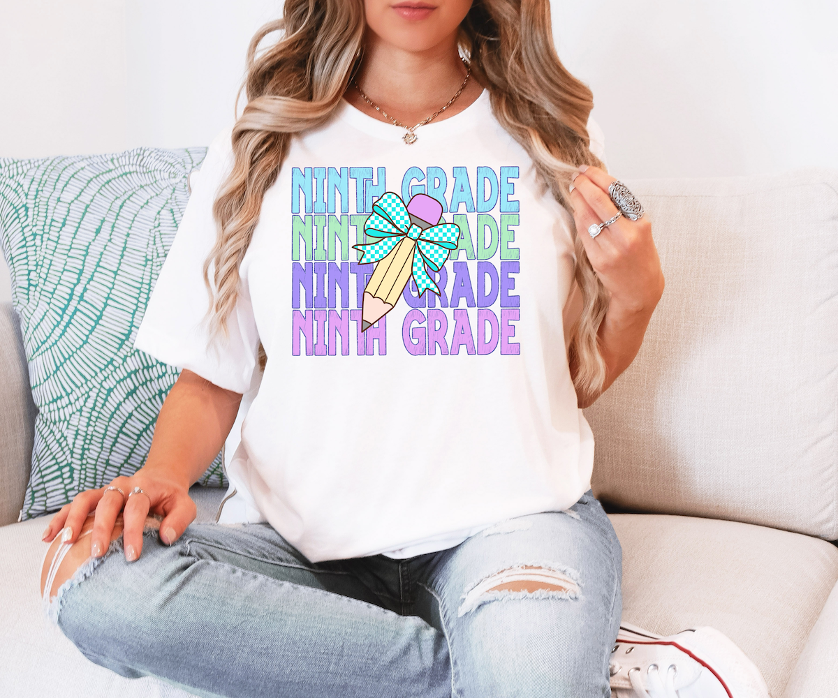 Ninth Grade Bookworm Repeat Checker Pencil DTF Print