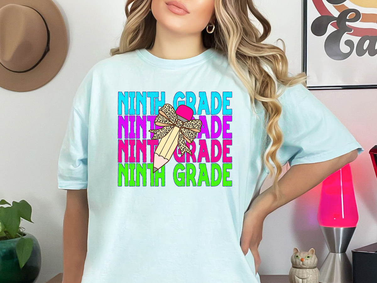 Ninth Grade Bookworm Repeat Leopard Pencil DTF Print