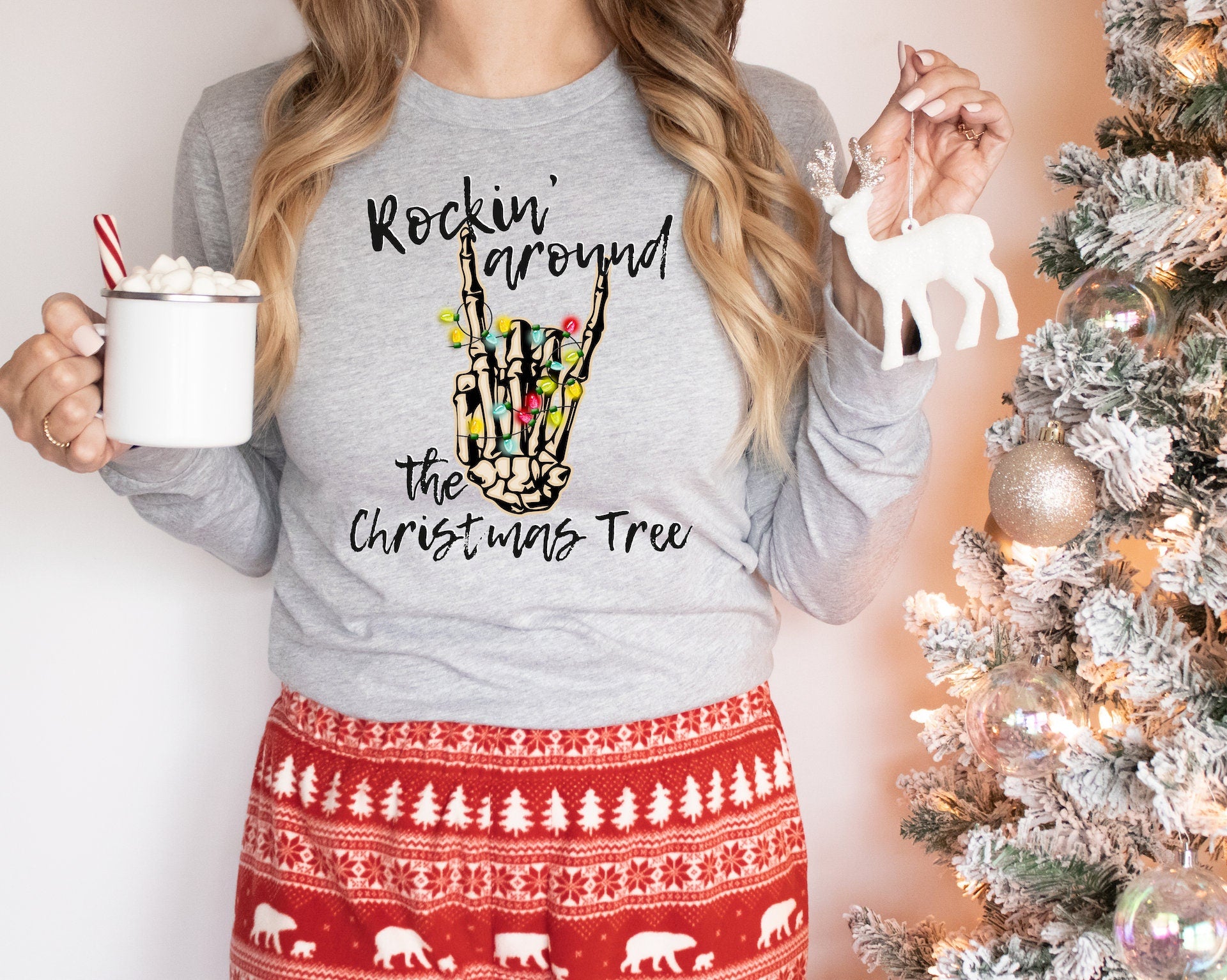Rockin Around the Christmas Tree Skeleton Hand DTF Print