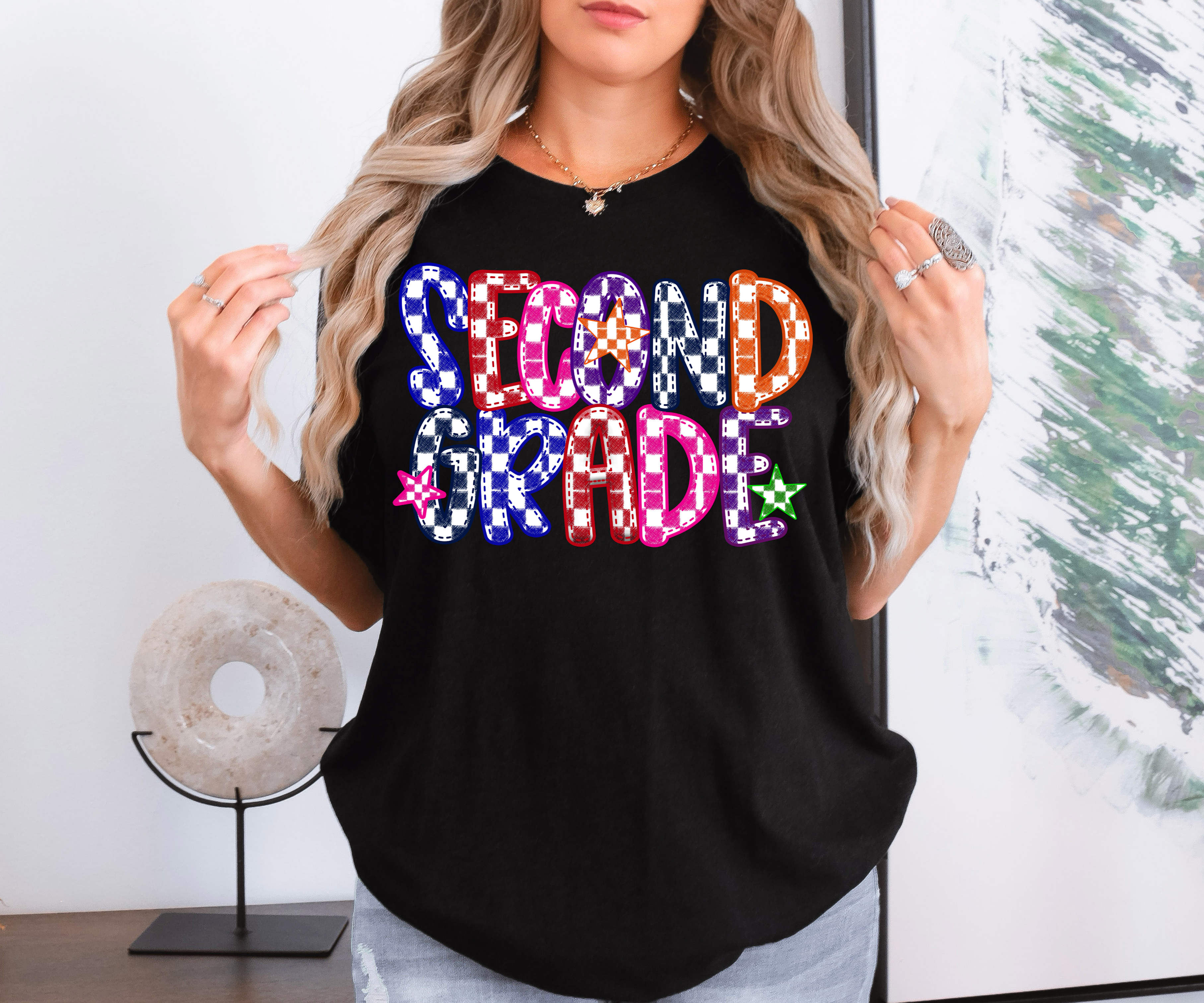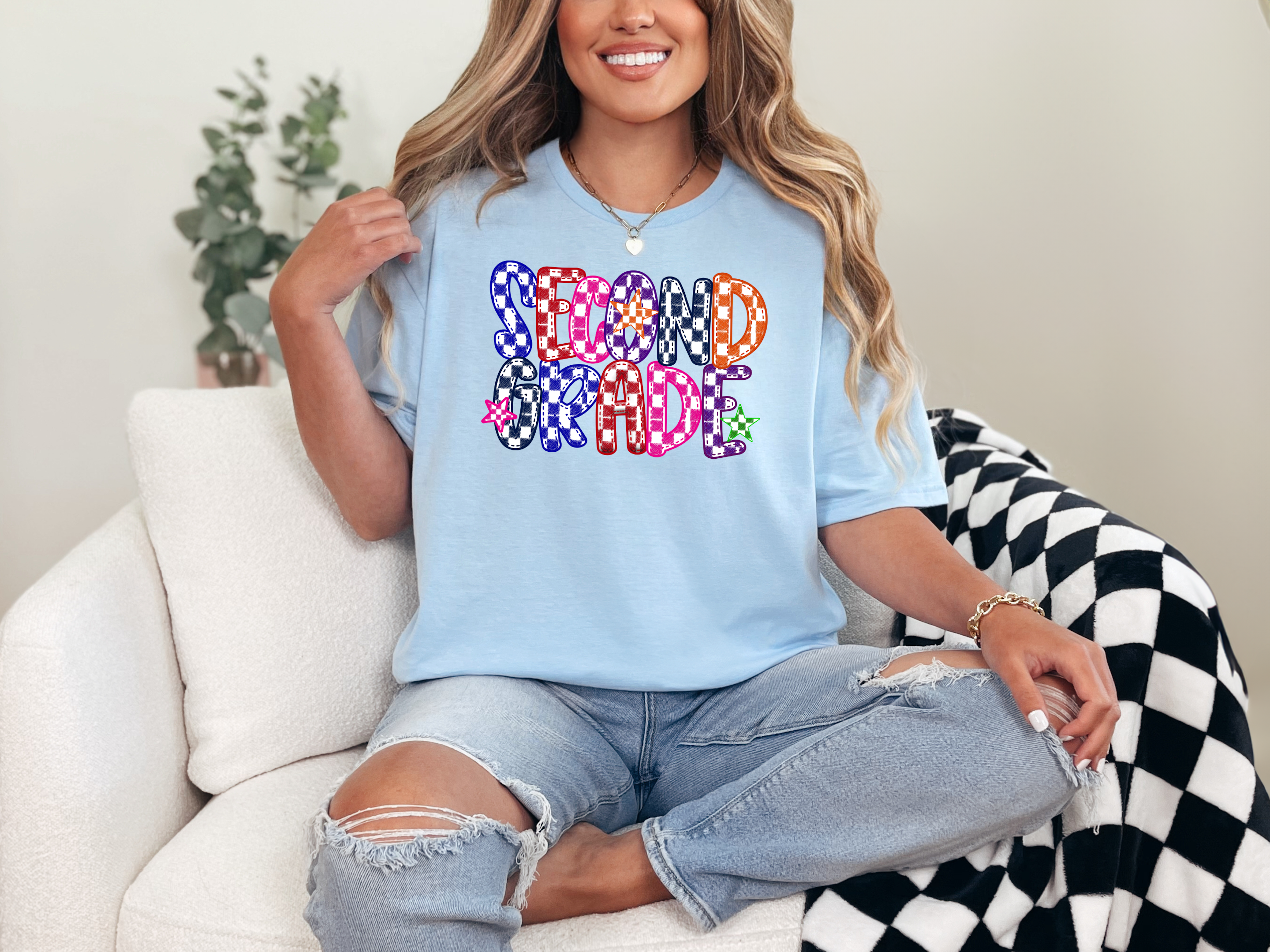 Second Grade Checker Sketch DTF Print