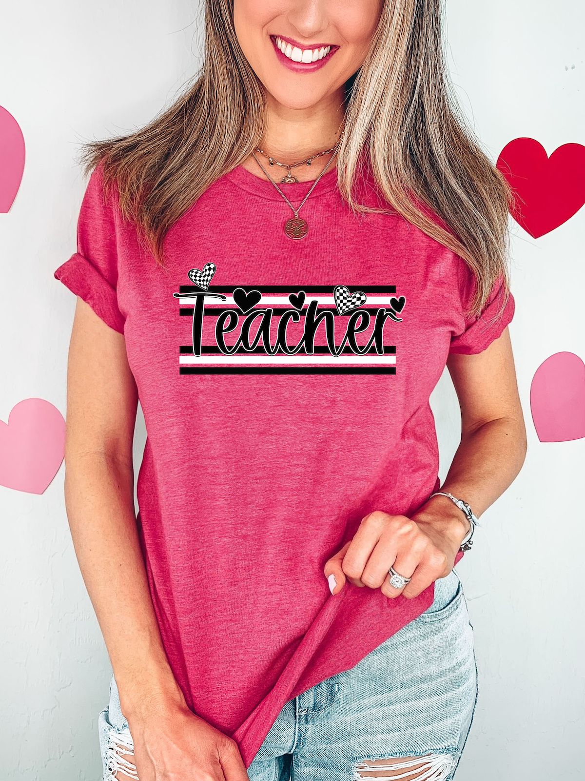Teacher Black and White Hearts DTF Print