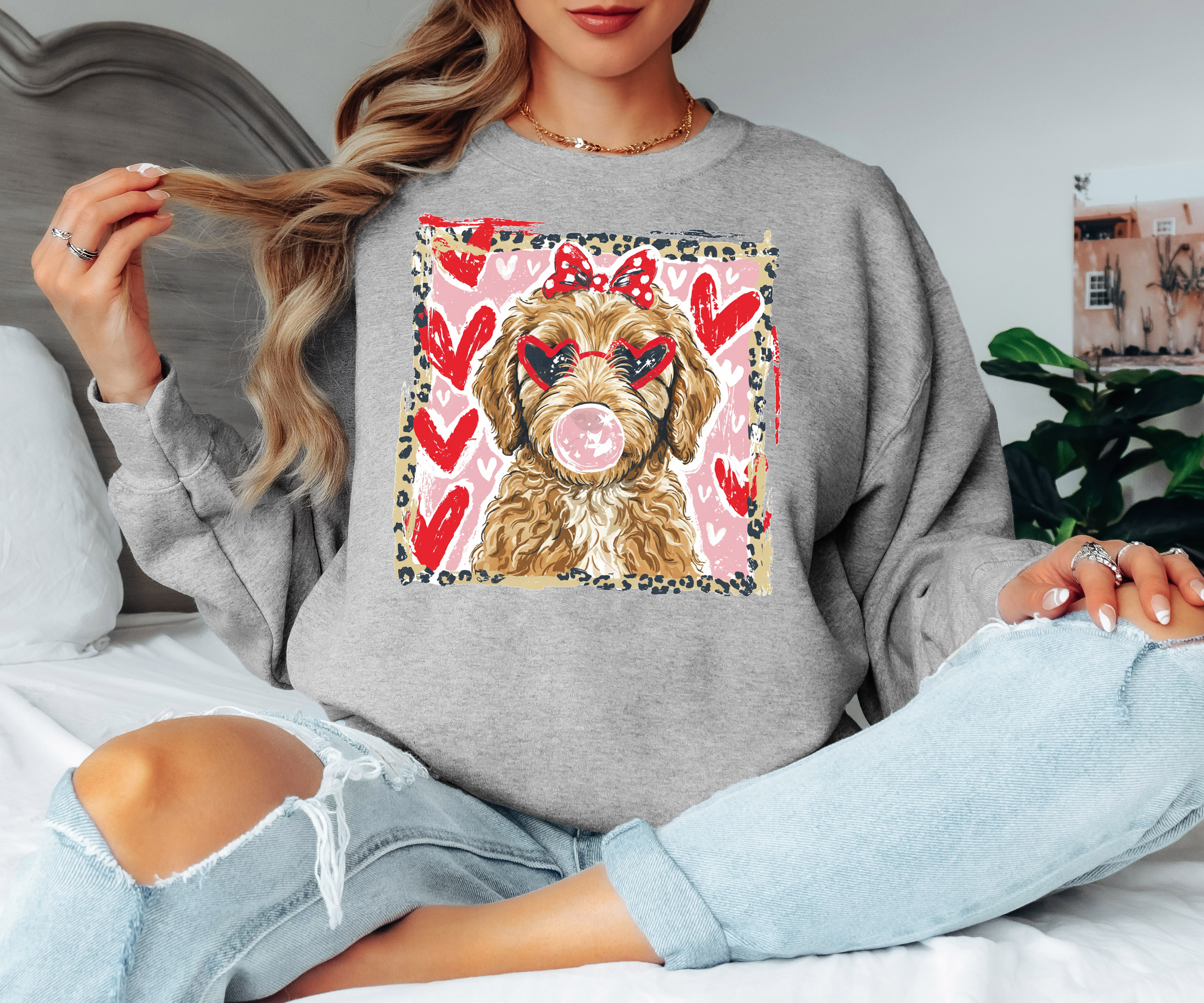 Valentine Golden Doodle Watercolor DTF Print